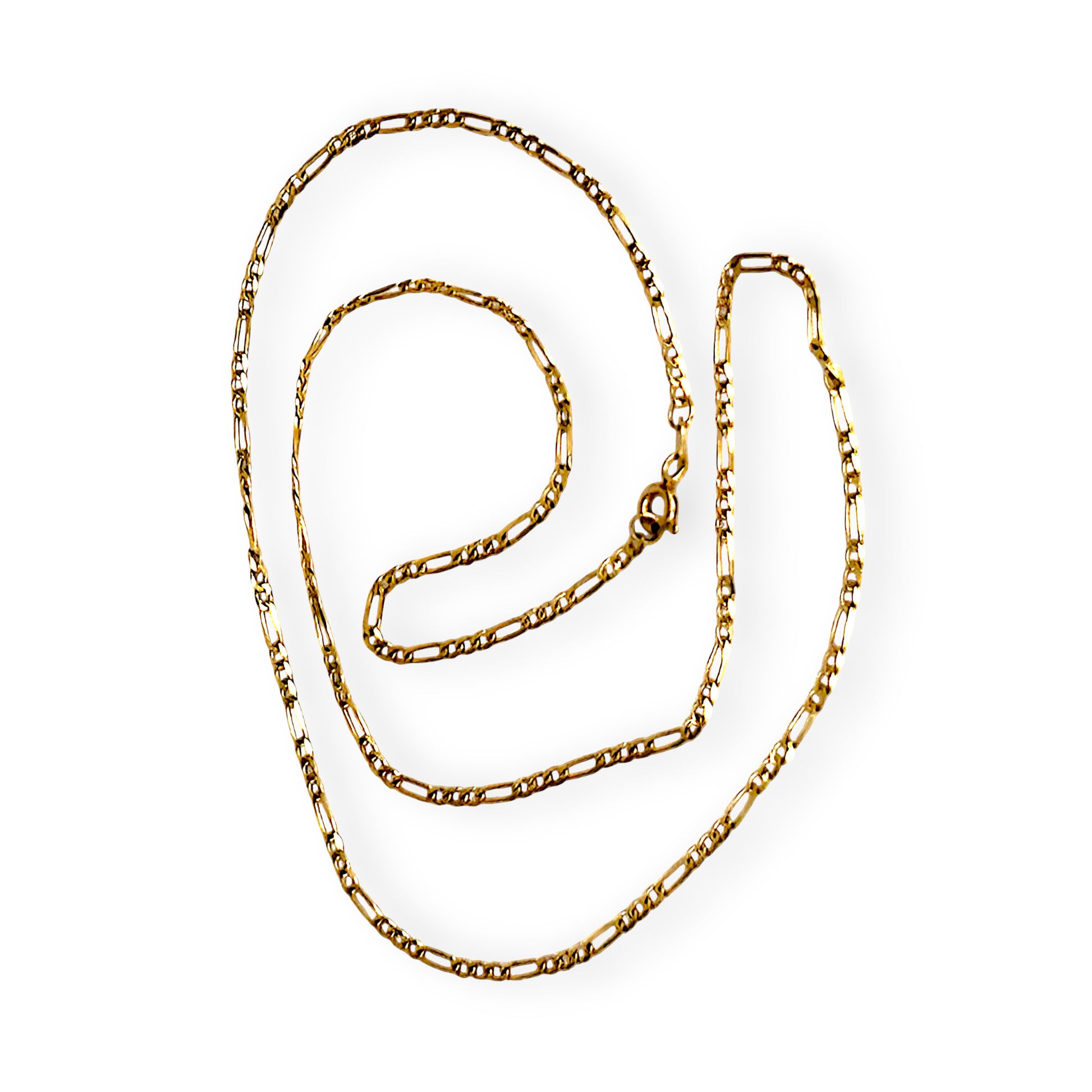A classic 9ct gold Figaro chain featuring a stylish 3+1 link pattern. Its 50cm length and 1.8mm width offer a sleek, polished look with subtle presence. Perfect for adding timeless elegance to everyday wear or special occasions.
