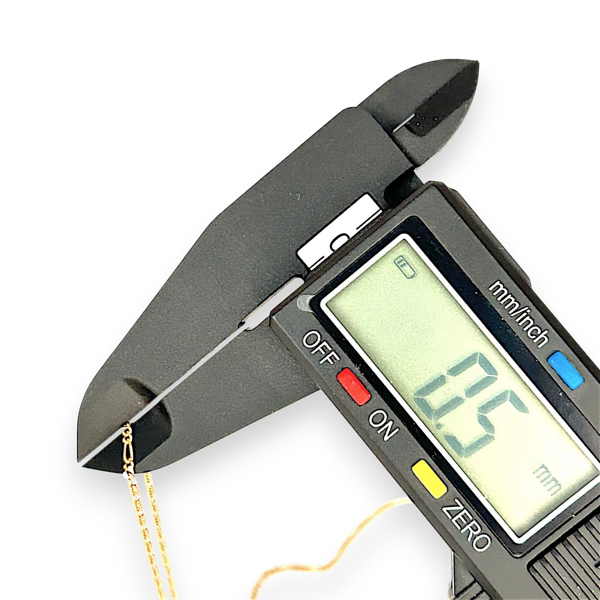A beautifully crafted 9ct gold Figaro chain featuring a graceful 3+1 link pattern. Its fine 1.3mm width and 40cm length offer a delicate yet sophisticated presence. Perfect as a subtle statement piece or layered for timeless elegance.