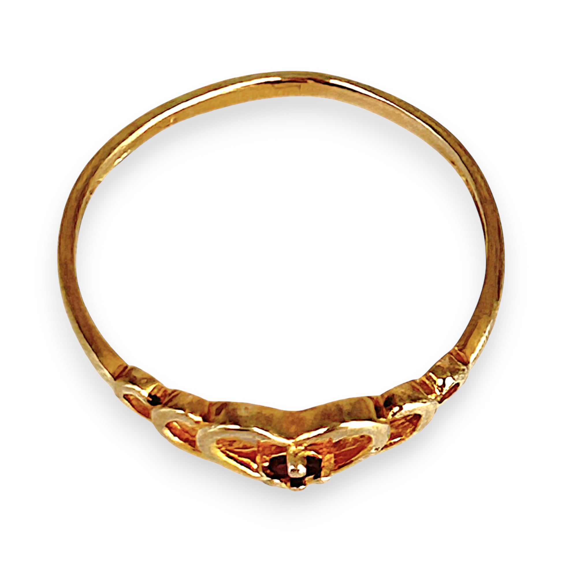 GOLD DEAL | 9ct Gold Heart Trio Ring With Reddish-Pink Ruby