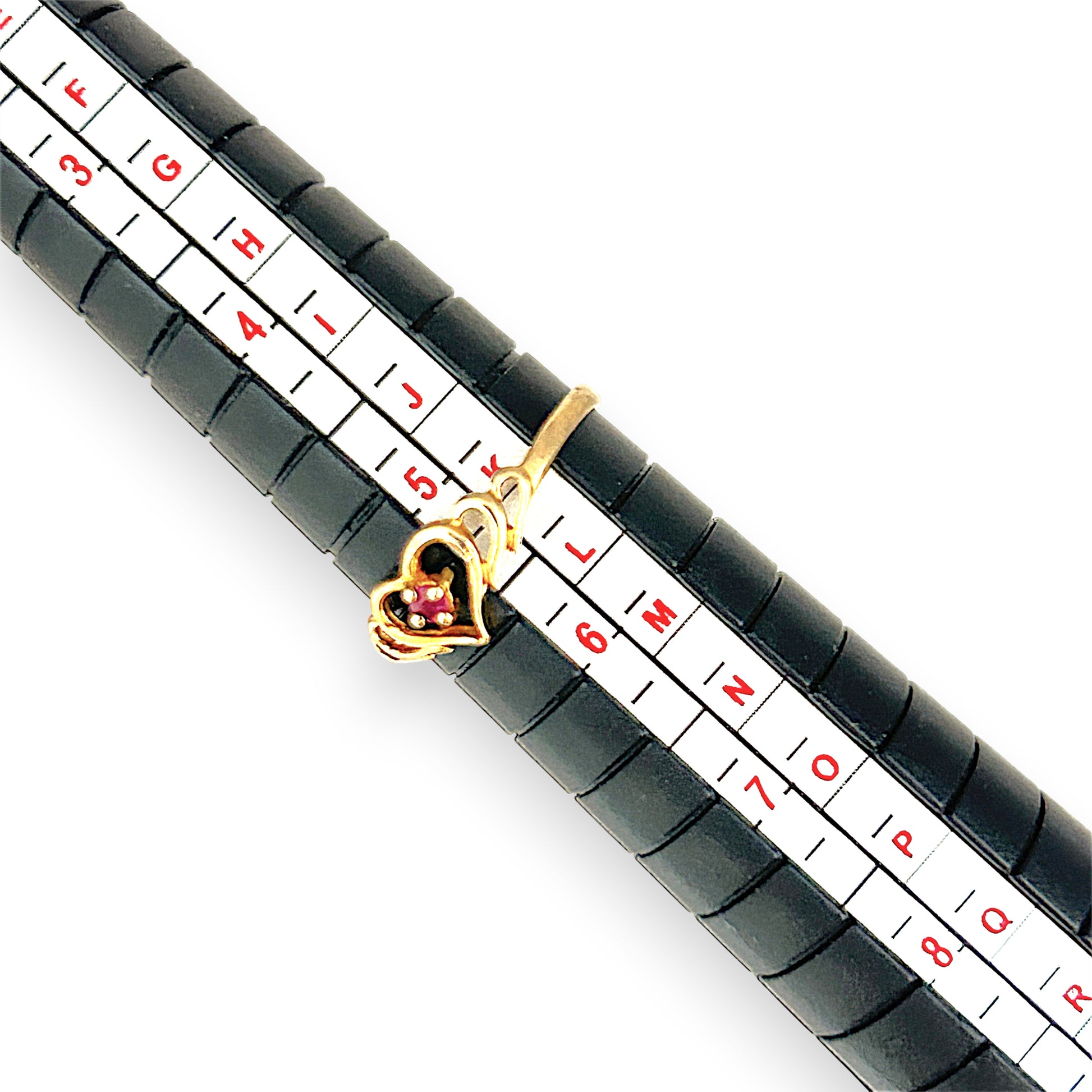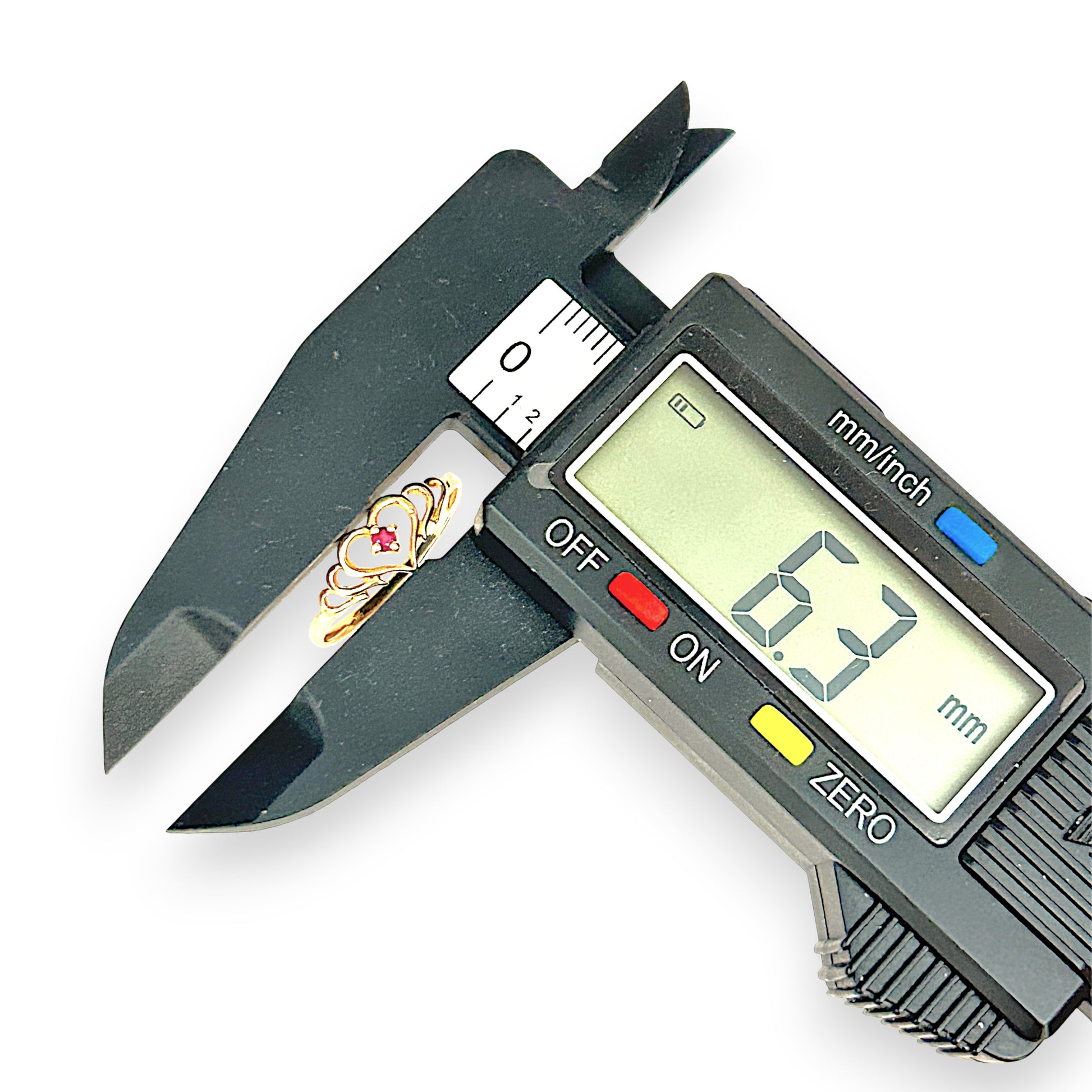 Romantic and radiant, this 9ct gold ring features a central heart adorned with a reddish-pink ruby, its warm glow evoking passion and tenderness. Flanked by two delicate heart outlines, the design forms a graceful trio that symbolizes love in all its forms—past, present, and future. The polished gold band adds timeless elegance, making this piece a heartfelt gift or a charming personal keepsake.