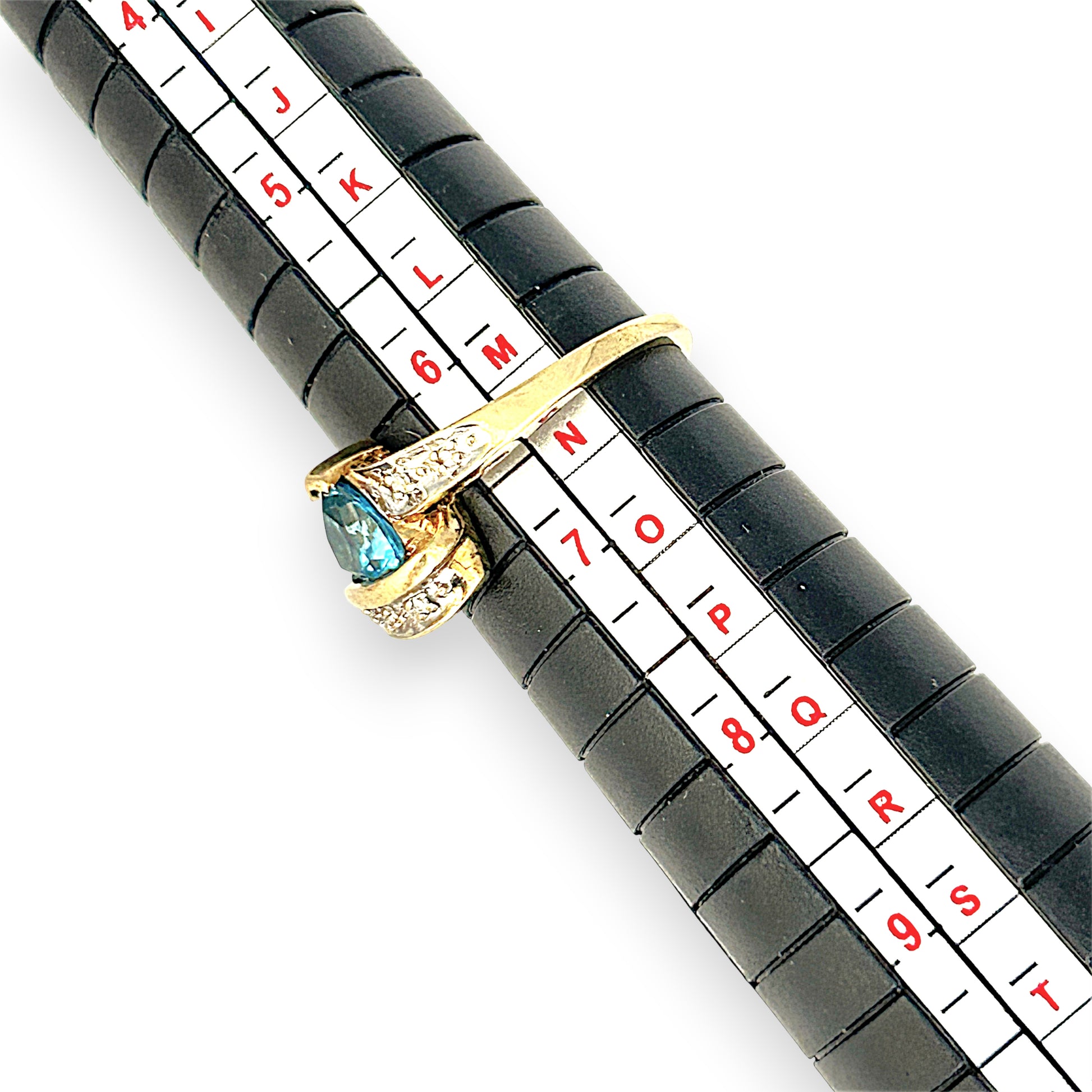 GOLD DEAL | 9ct (9K) Gold Triangular Cut Sparkle Blue Topaz & Diamond Ring