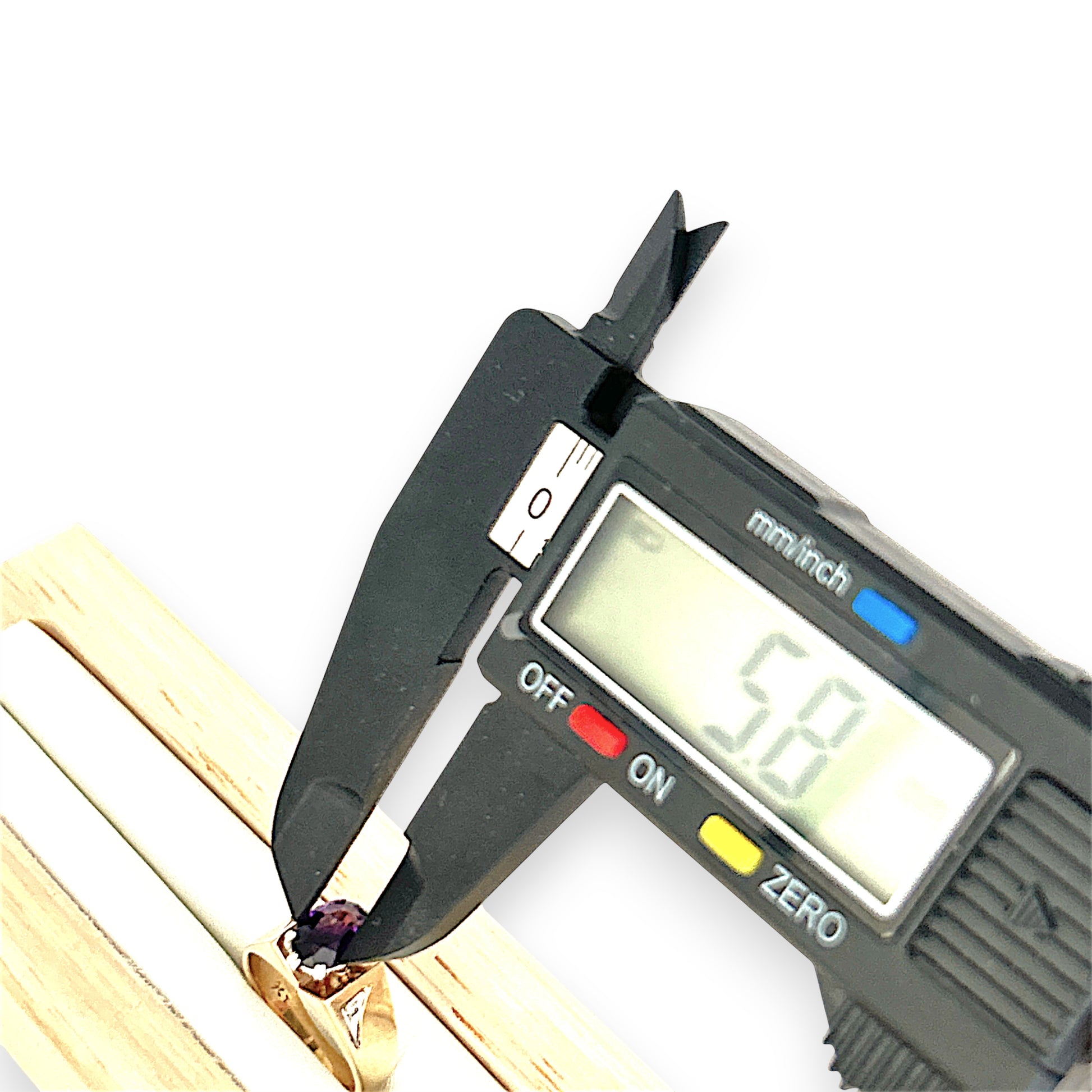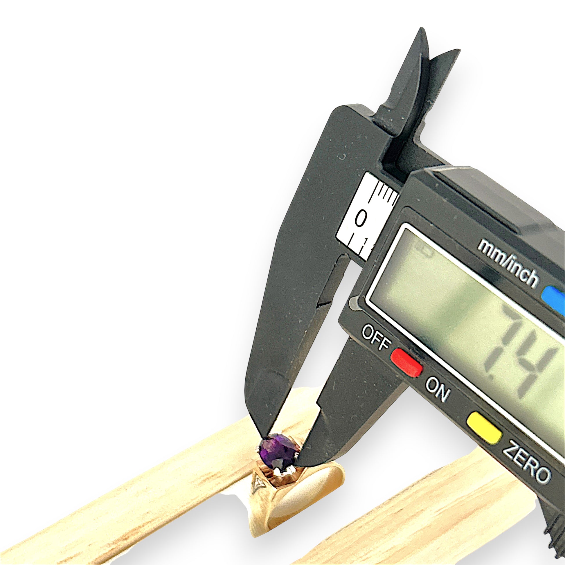 - Stone: Natural 2 round brilliant cut diamonds and oval-shaped amethyst