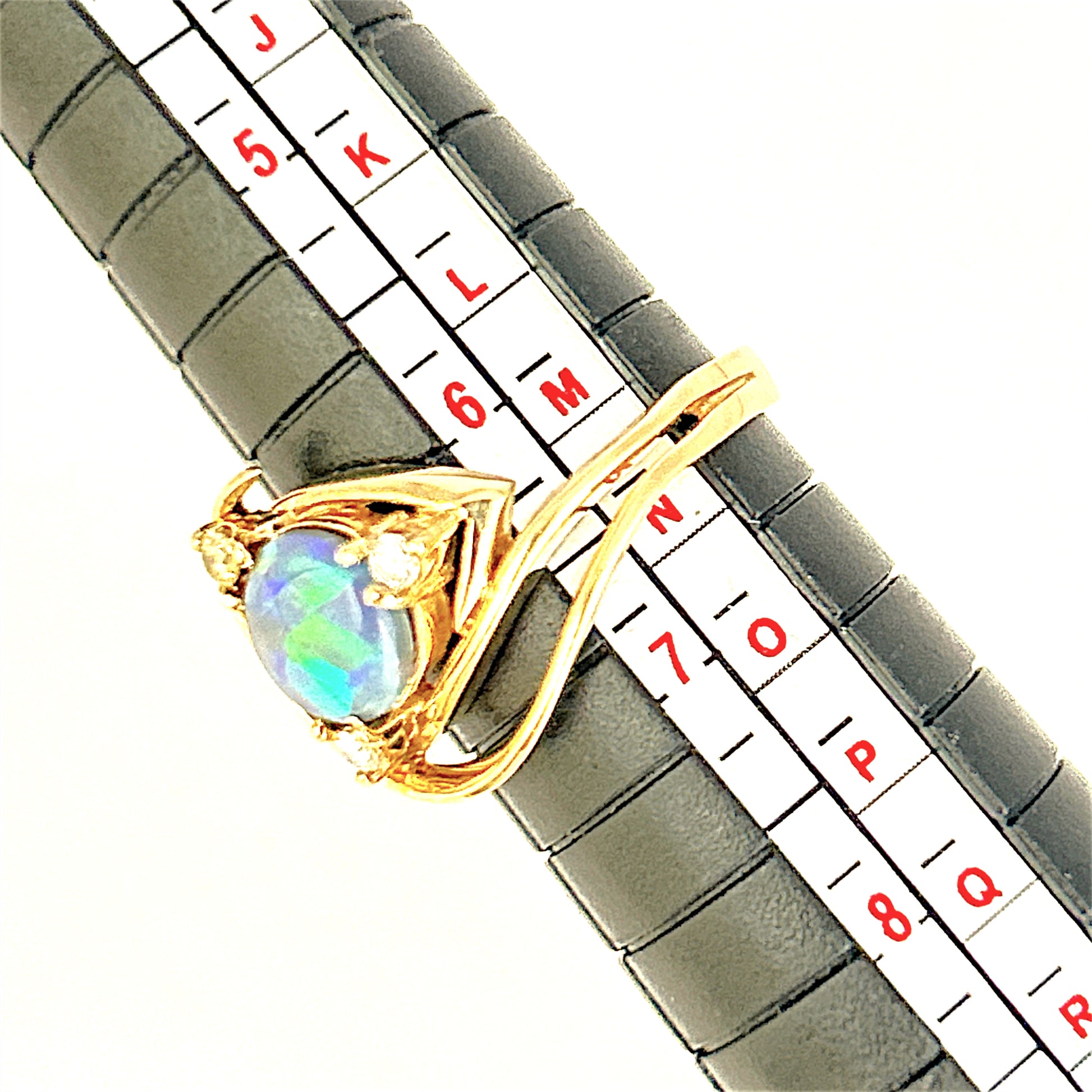 - Stone: Natural Black Opal 0.80ct. and Natural diamonds 3 round brilliant cut, TDW 0.90ct.