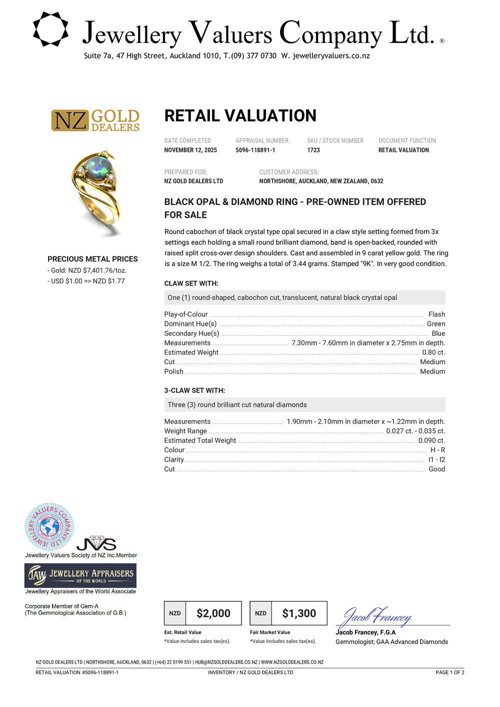 nzgolddealersGOLD DEAL | 9ct Gold Midnight Flame Black Opal Ring Valuation: $2,000