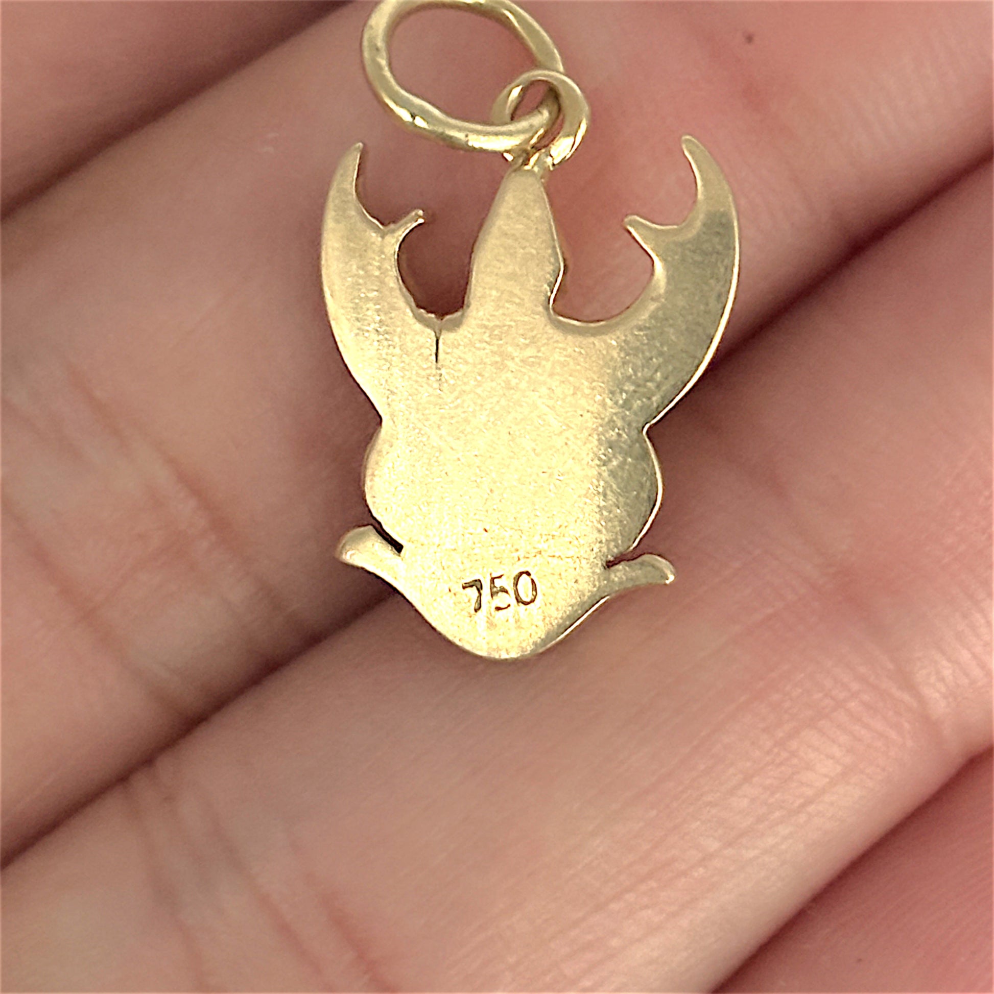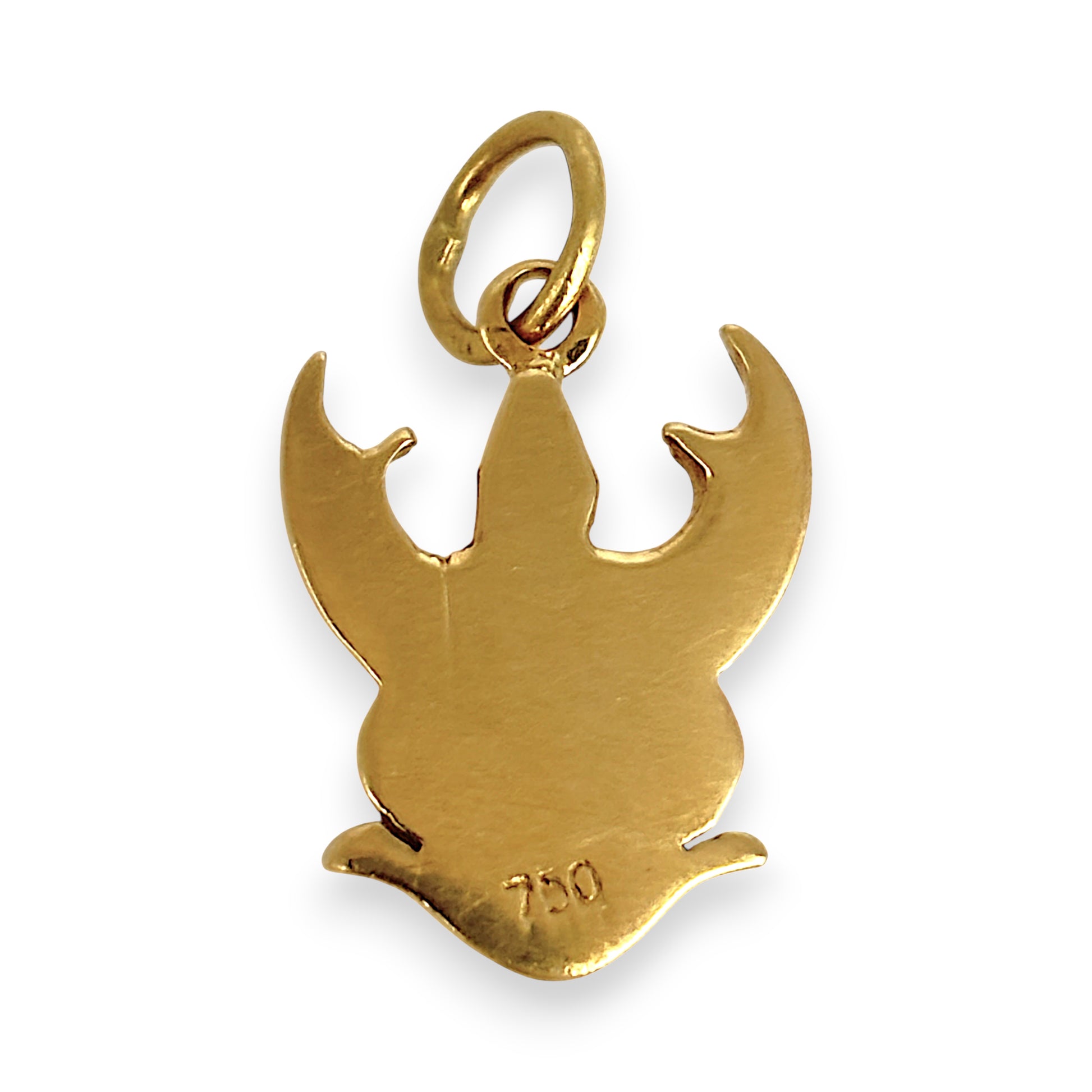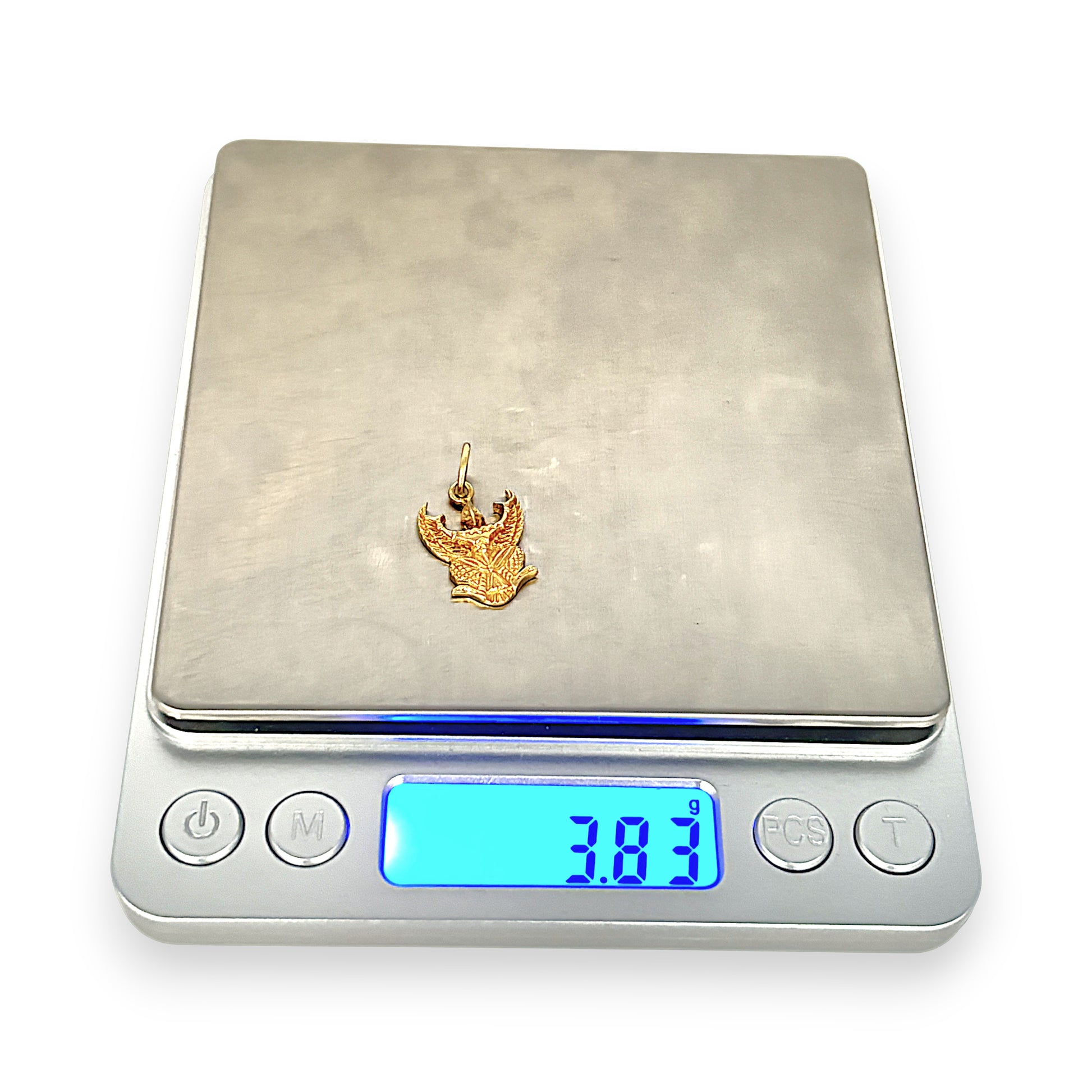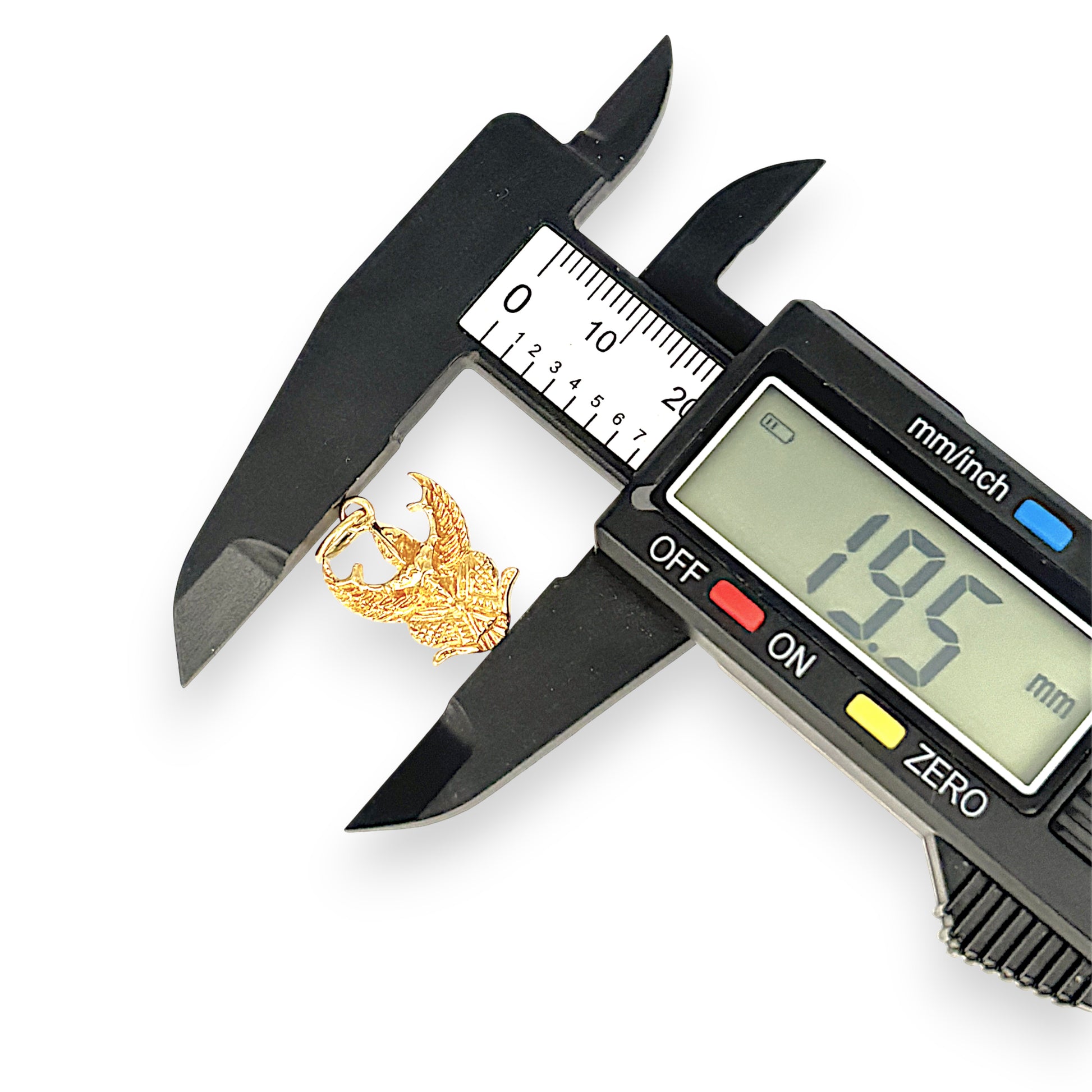 Bold and symbolic, this intricately crafted 18ct yellow gold pendant captures the majestic form of an eagle in full flight, its wings arched upward in a powerful display of grace and determination. Every feather is meticulously detailed, reflecting the artisan’s devotion to precision and depth. A polished loop crowns the piece, ready to suspend from your favorite chain. Representing courage, clarity, and sovereignty, this pendant is more than adornment—it’s a statement of purpose and personal power, ideal for those who soar beyond limits.