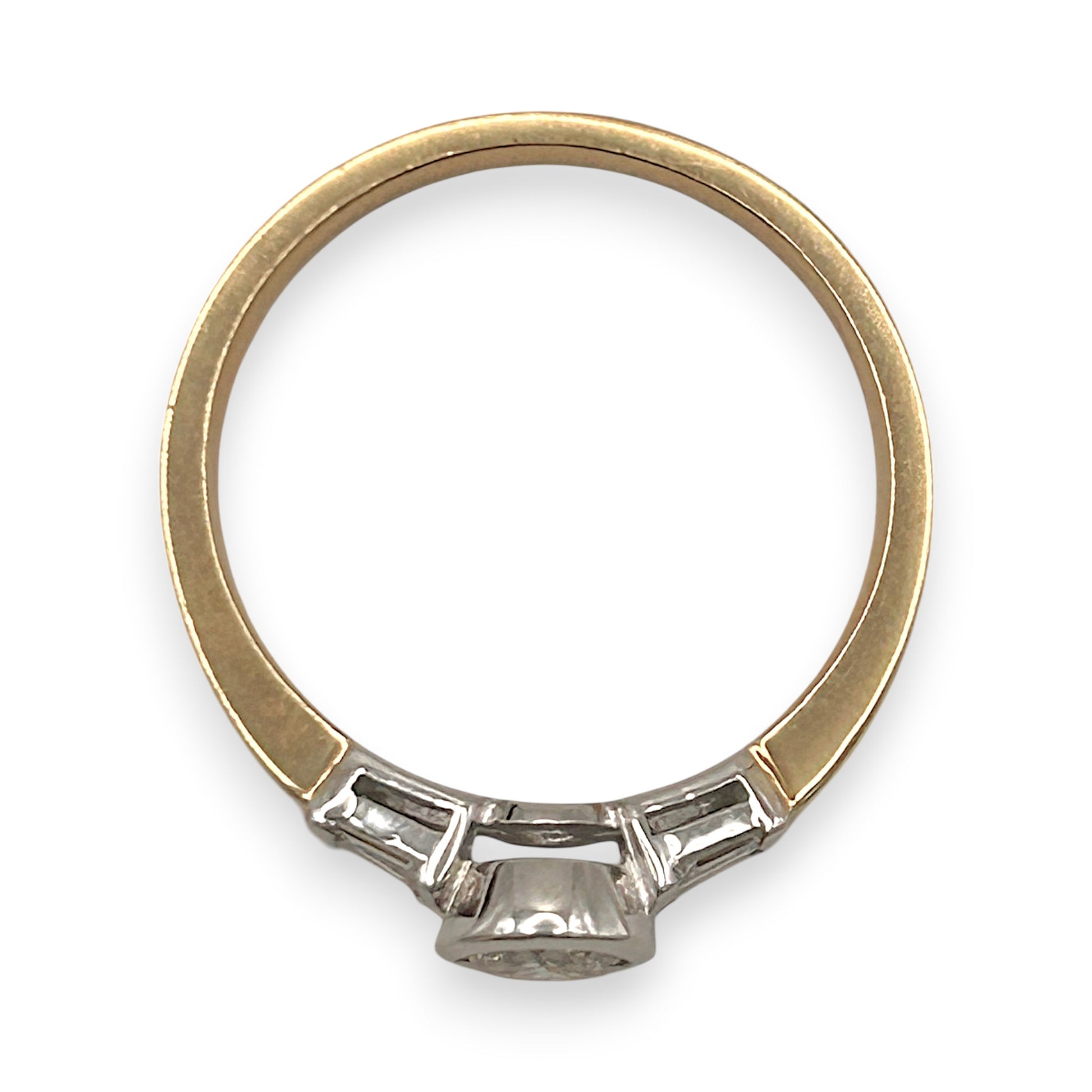 - Stone: Natural Diamonds 1 round brilliant cut & 4 tapered baguette cut, TDW 0.51ct.