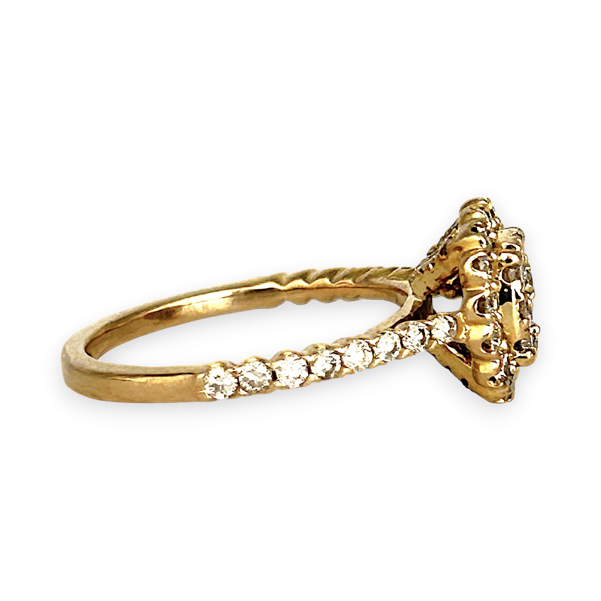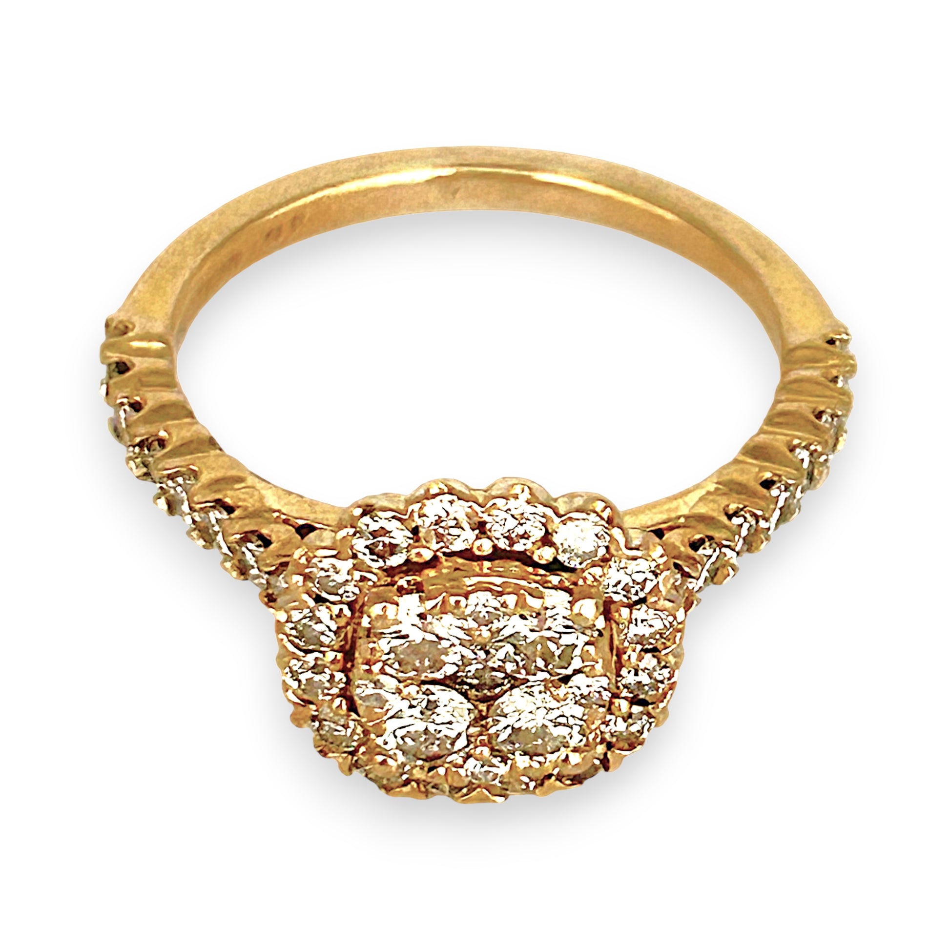 Crafted in luminous 9ct gold, this exquisite ring showcases a brilliant round-cut diamond encircled by a halo of natural diamonds, with additional stones adorning the band. Totaling 1.00ct, the diamonds offer radiant sparkle and timeless elegance. A luxurious statement—and a smart investment in enduring beauty.