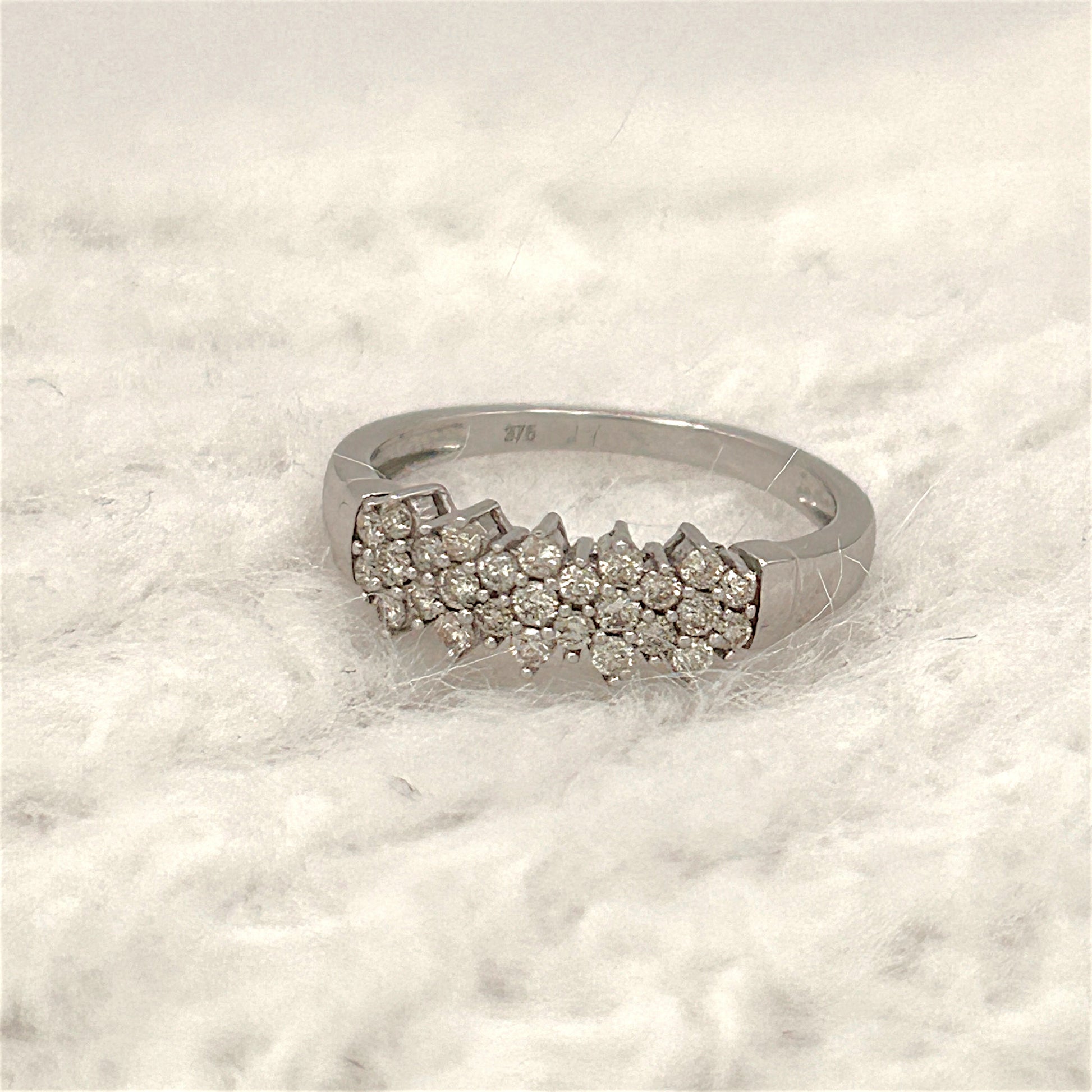 A sleek 9ct white gold band set with natural diamonds in a clean, modern cluster. Slim, lightweight, and designed for everyday elegance. A minimalist piece that shines with quiet confidence.