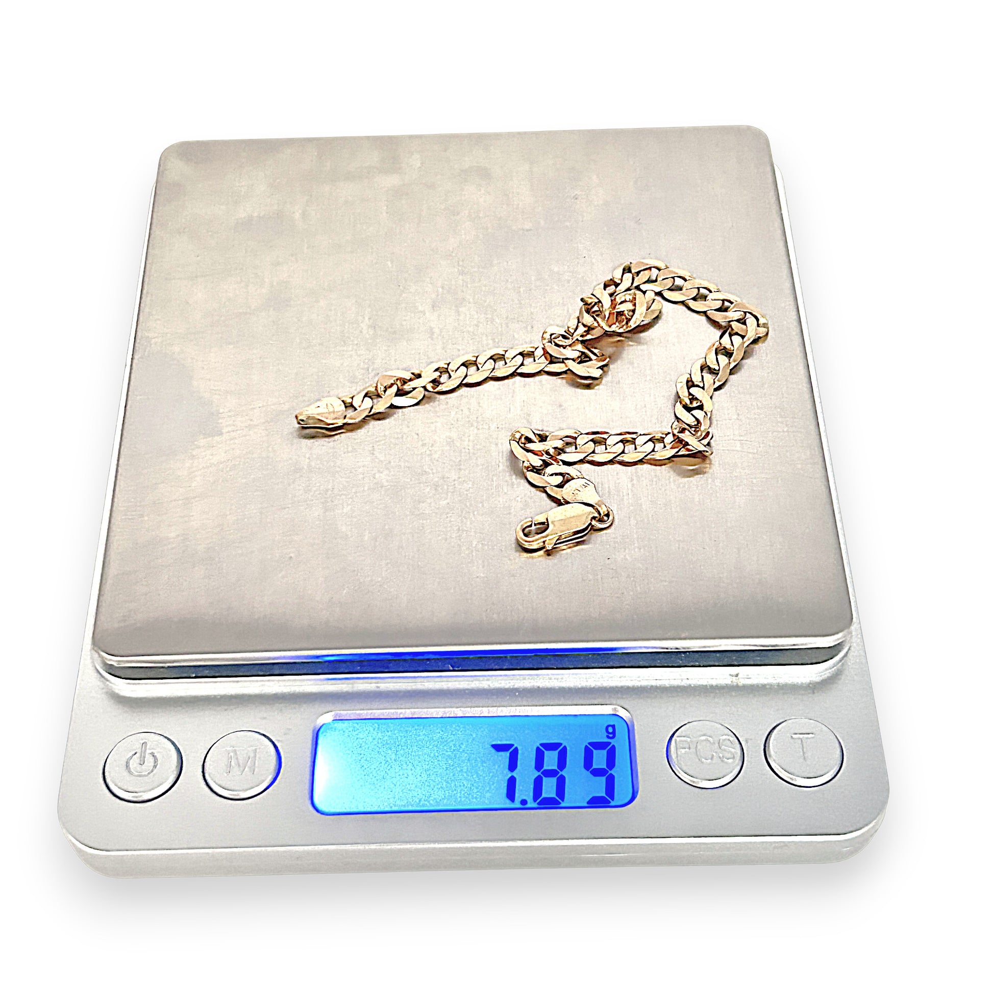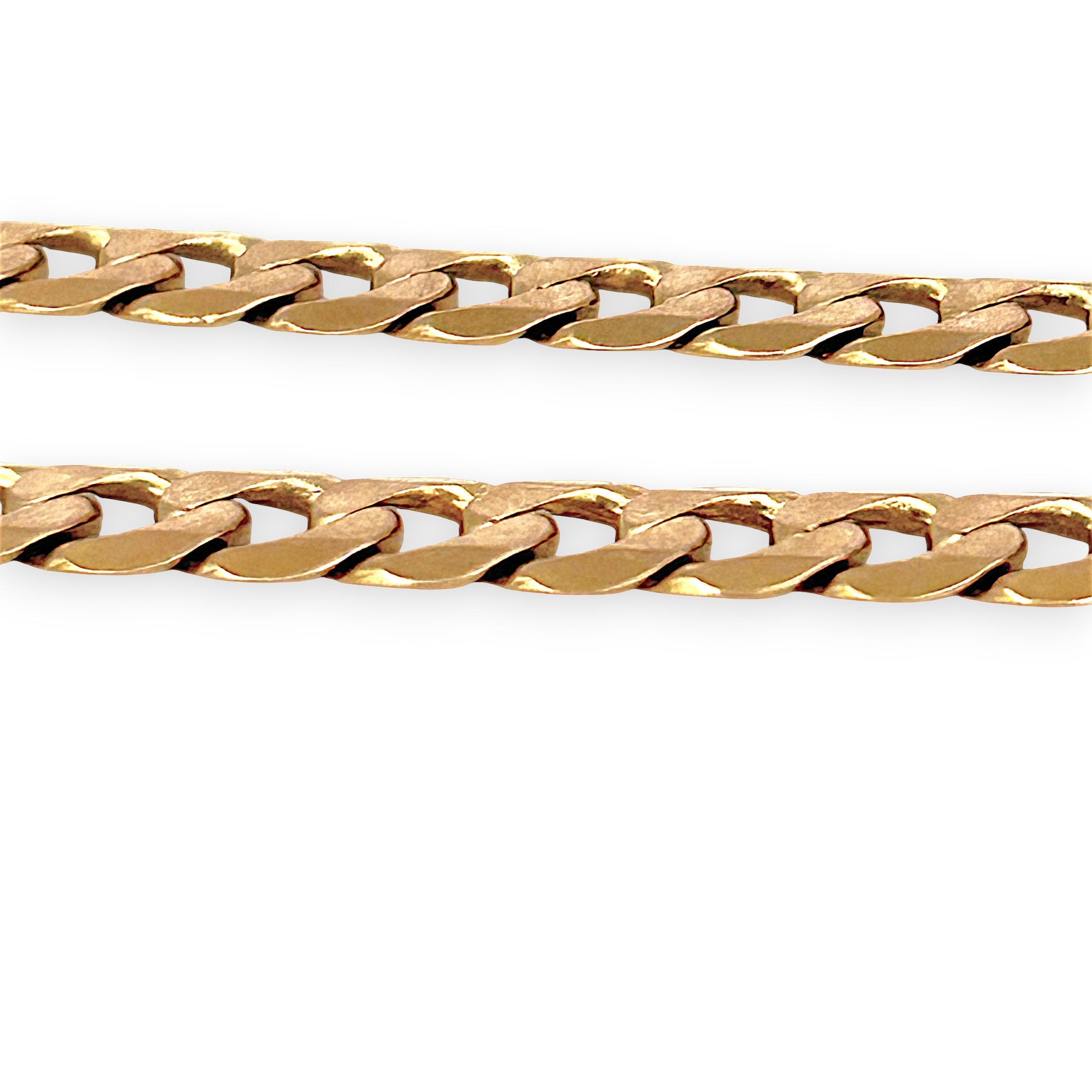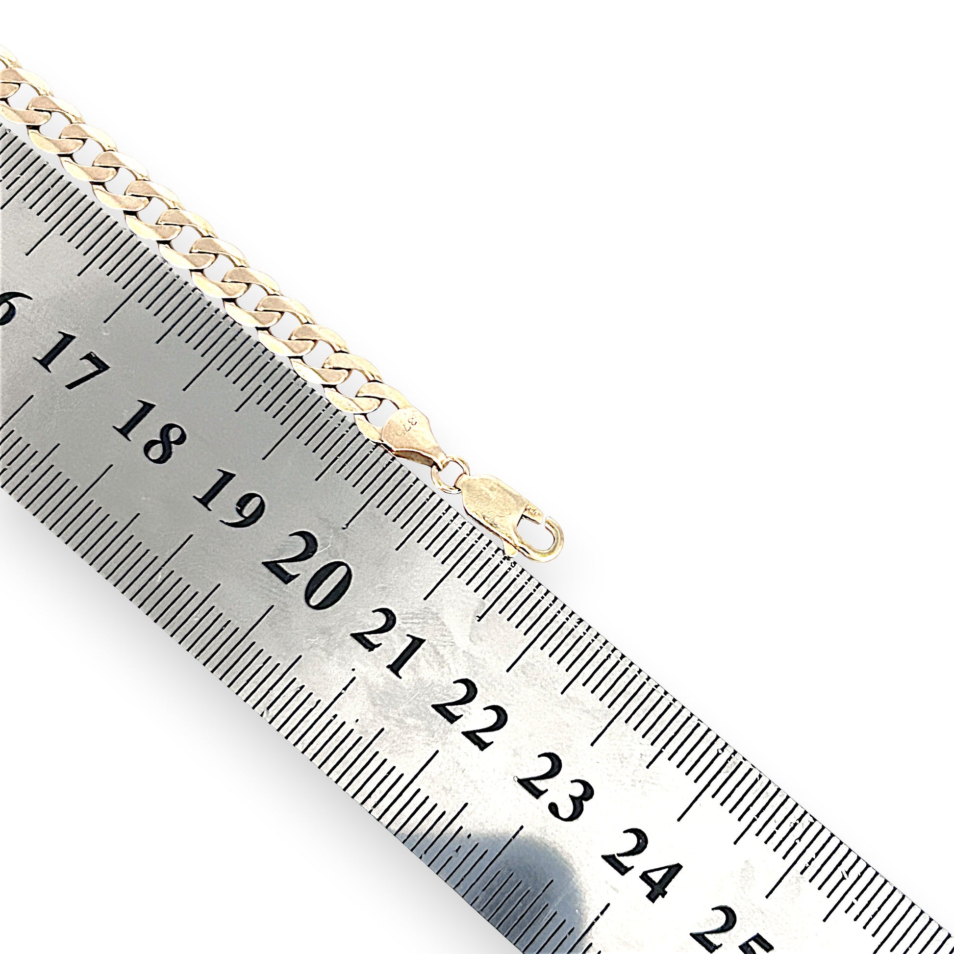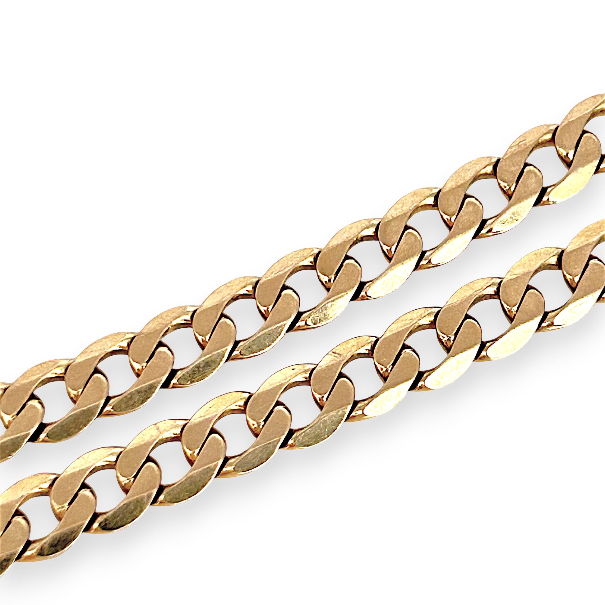 Refined yet bold, this 9ct gold bracelet showcases a series of flawlessly polished flat curb links that lie smoothly against the skin, catching light with every movement. The streamlined silhouette and rich golden hue exude effortless sophistication, while the secure lobster clasp adds a touch of functional finesse. Whether worn solo or layered for impact, this bracelet is a statement of modern elegance—crafted for those who appreciate clean lines, radiant shine, and enduring style.