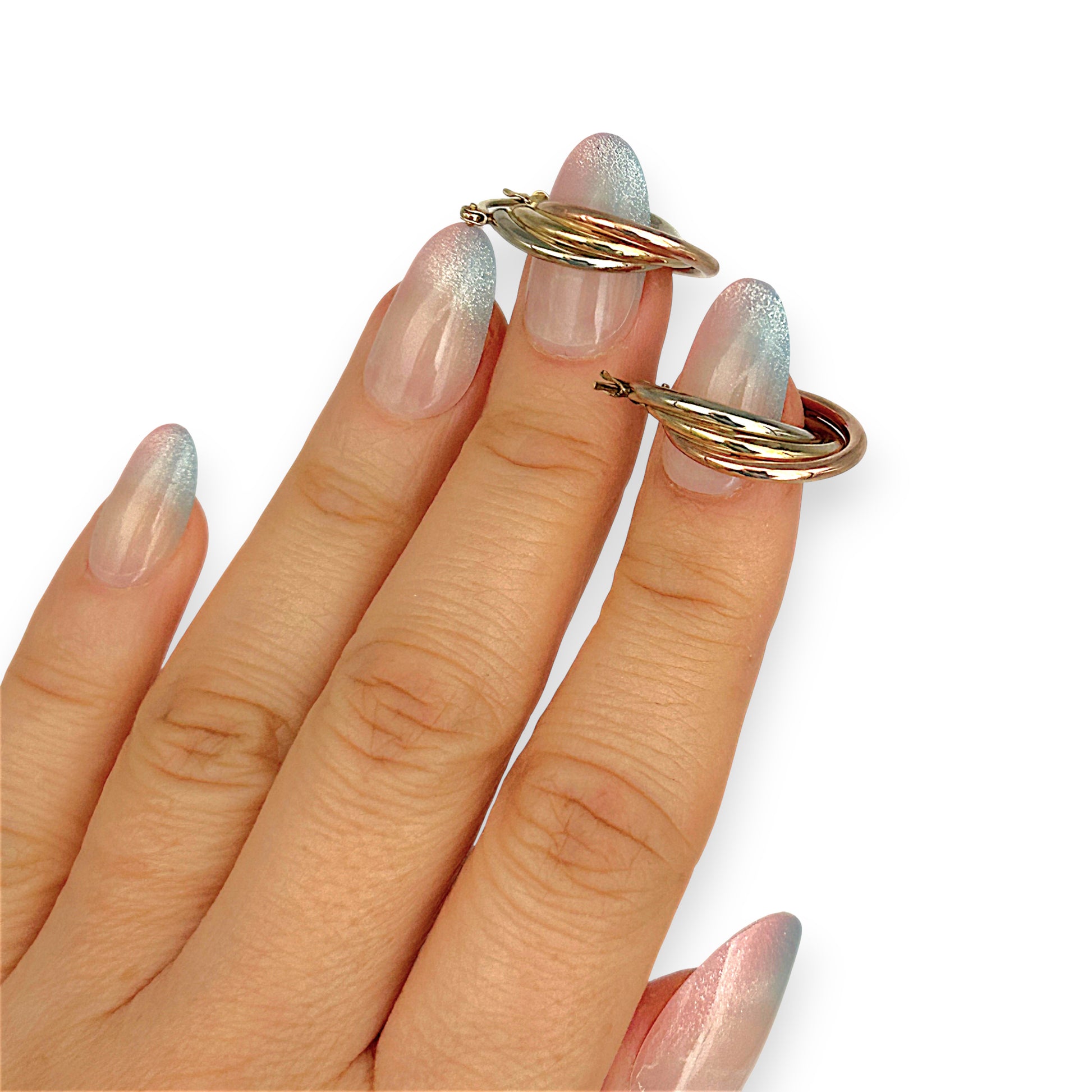 nzgolddealersGOLD DEAL | 9ct Y/W/R Gold Tricolour Harmony Hoop Earrings 22.9mm