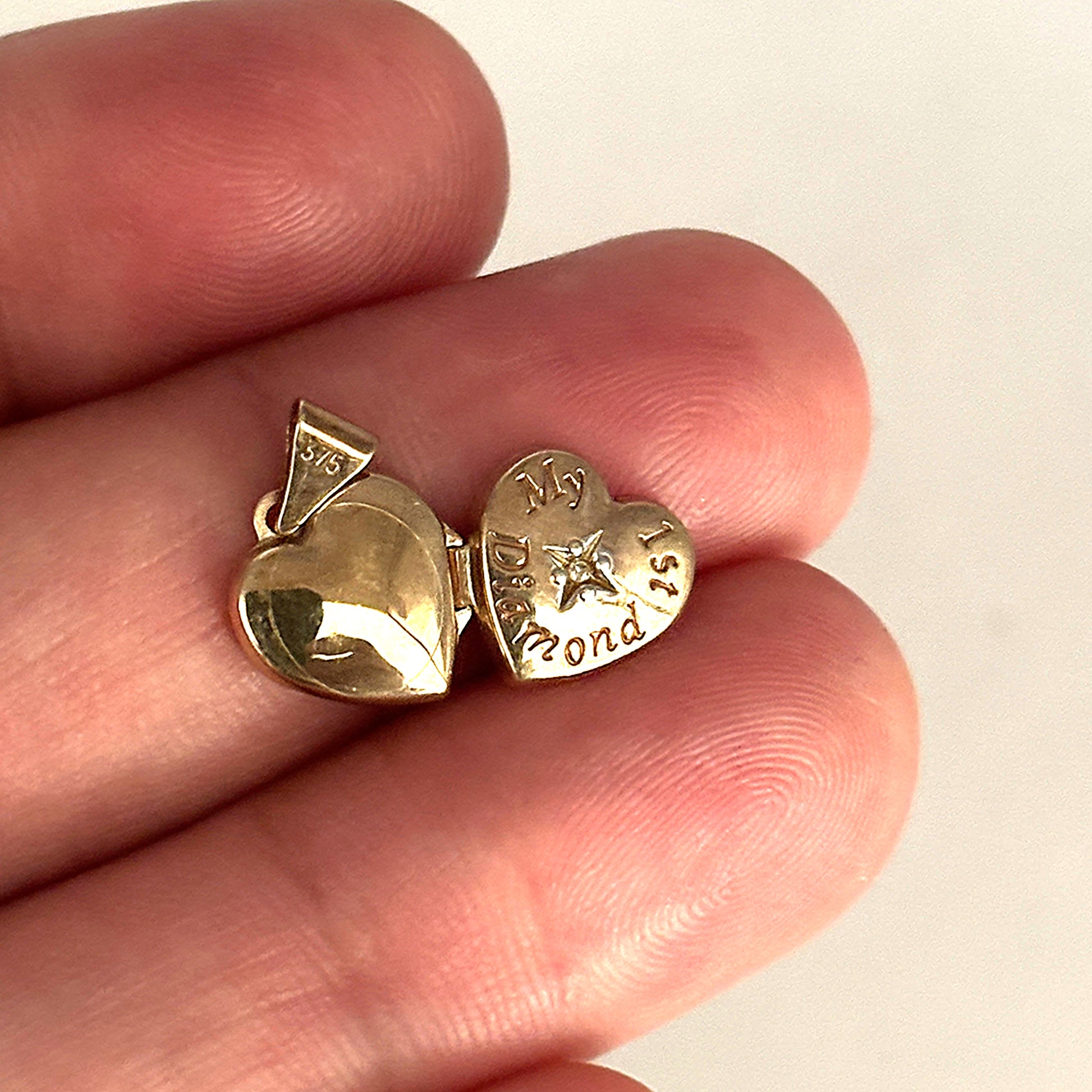 GOLD DEAL | 9ct (9K) Y/W Gold Heart Locket Pendant - My 1st Diamond