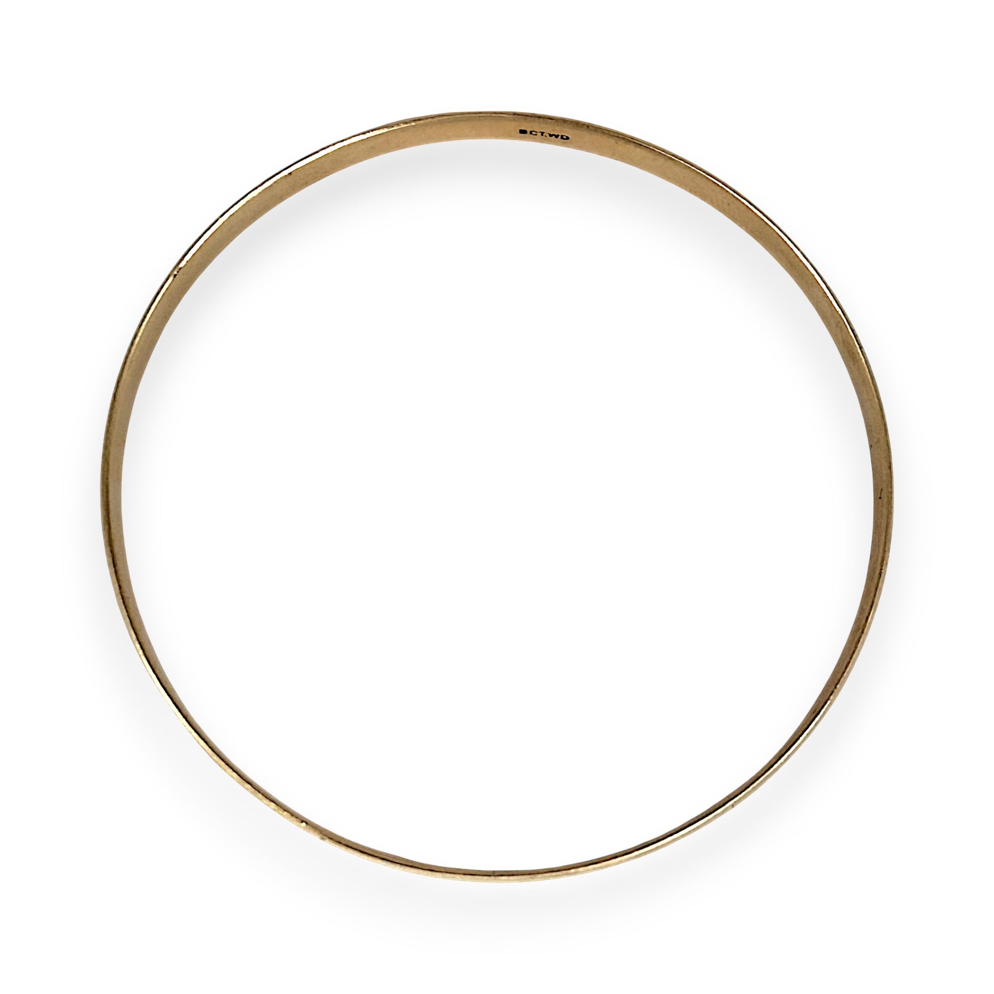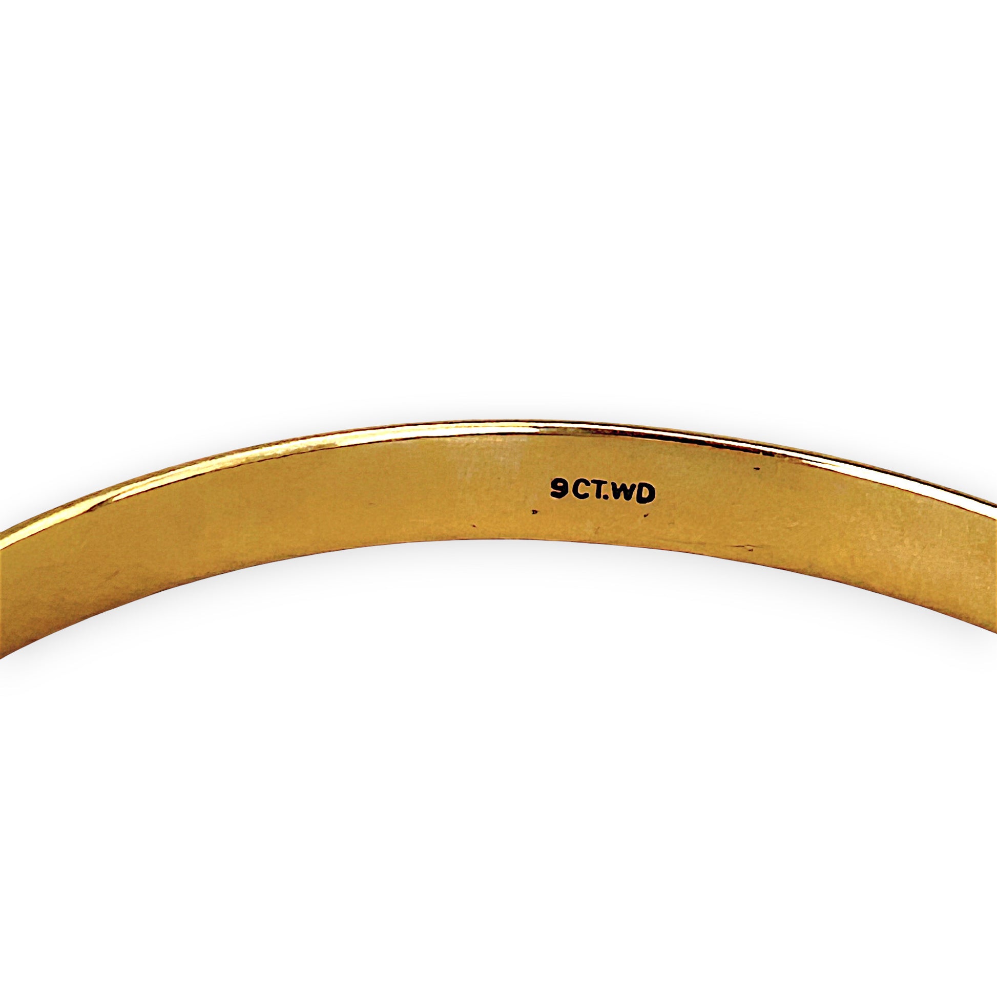 Crafted from 9-carat gold and weighing 12.29 grams, this bangle embodies understated elegance. Its smooth, polished finish and uniform design make it a versatile accessory for everyday wear or special occasions. With a warm golden hue and timeless appeal, this piece adds a touch of grace to any outfit — a lightweight classic with lasting charm.
