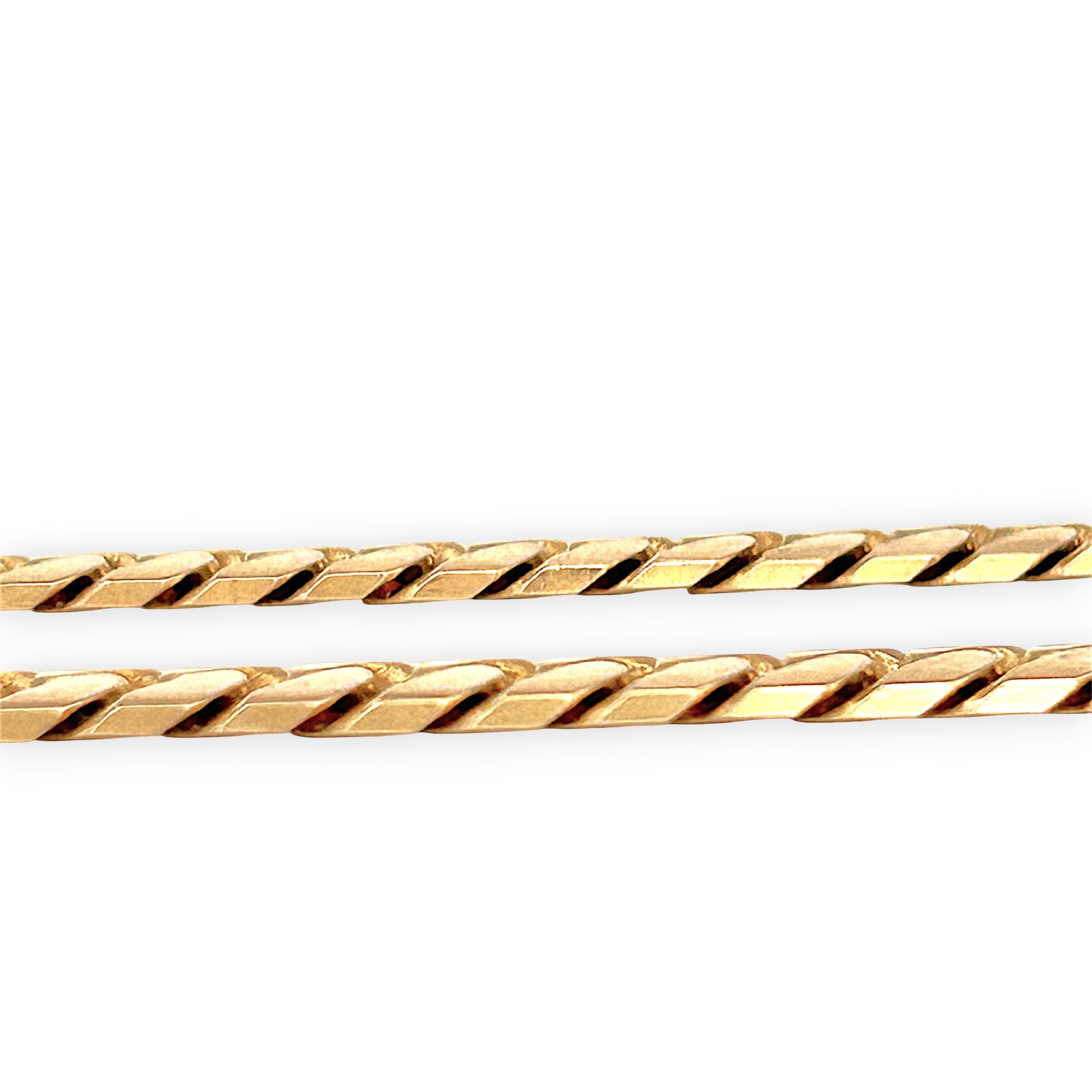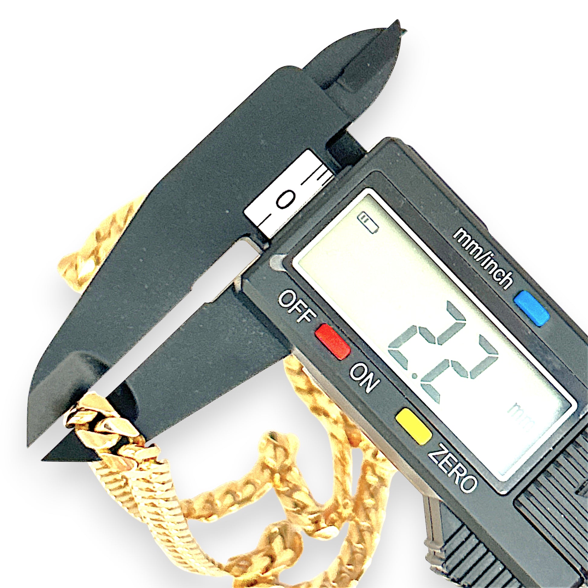 Crafted in lustrous 9ct (9K) gold, this Cuban link chain showcases thick, interlocking links with a smooth, flattened profile—designed for both strength and style. The polished surface reflects light beautifully, offering a luxurious finish that stands out. Measuring 50cm, it’s secured with a sturdy lobster clasp and hallmarked “ITALY,” a mark of fine craftsmanship. A timeless piece that blends bold presence with everyday versatility.