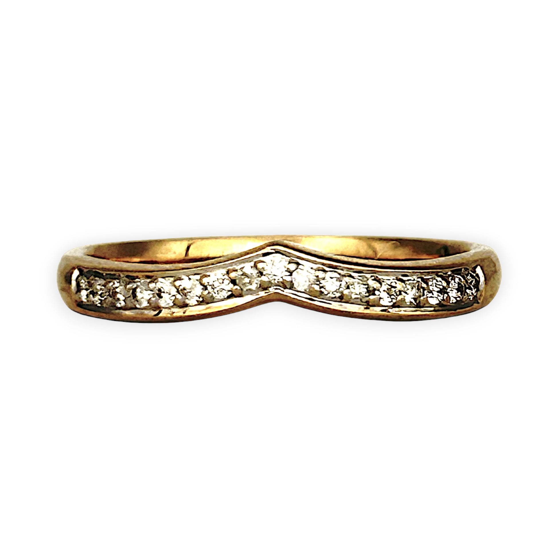 A graceful V-shaped ring crafted in radiant 9ct gold, adorned with a shimmering row of diamonds. Its timeless silhouette captures light and elegance in every angle. From Prouds Jewellers—celebrated for quality craftsmanship and enduring style.