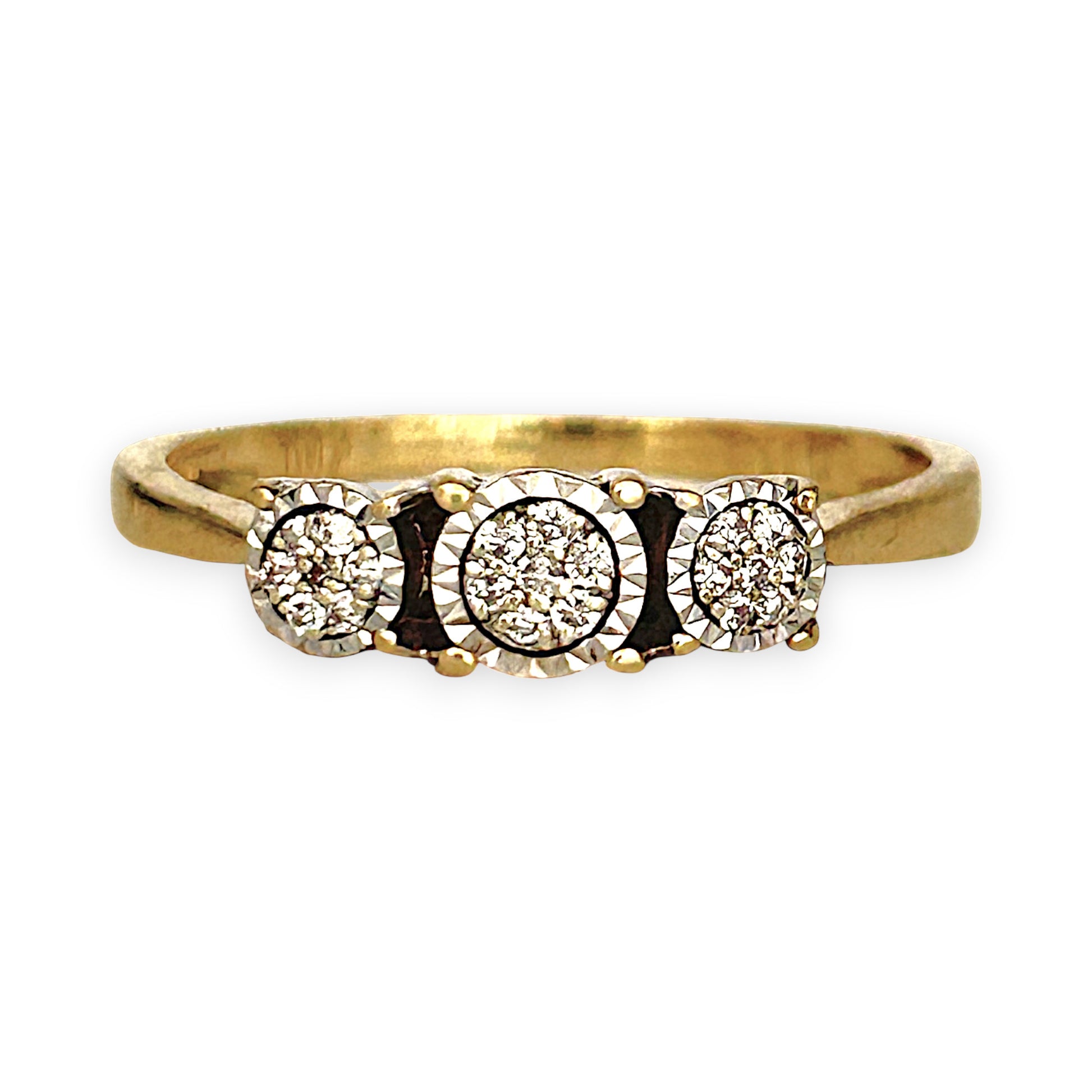 GOLD DEAL | 9ct (9K) Gold Trio Cluster Diamond Ring Diamond 0.12ct Size S