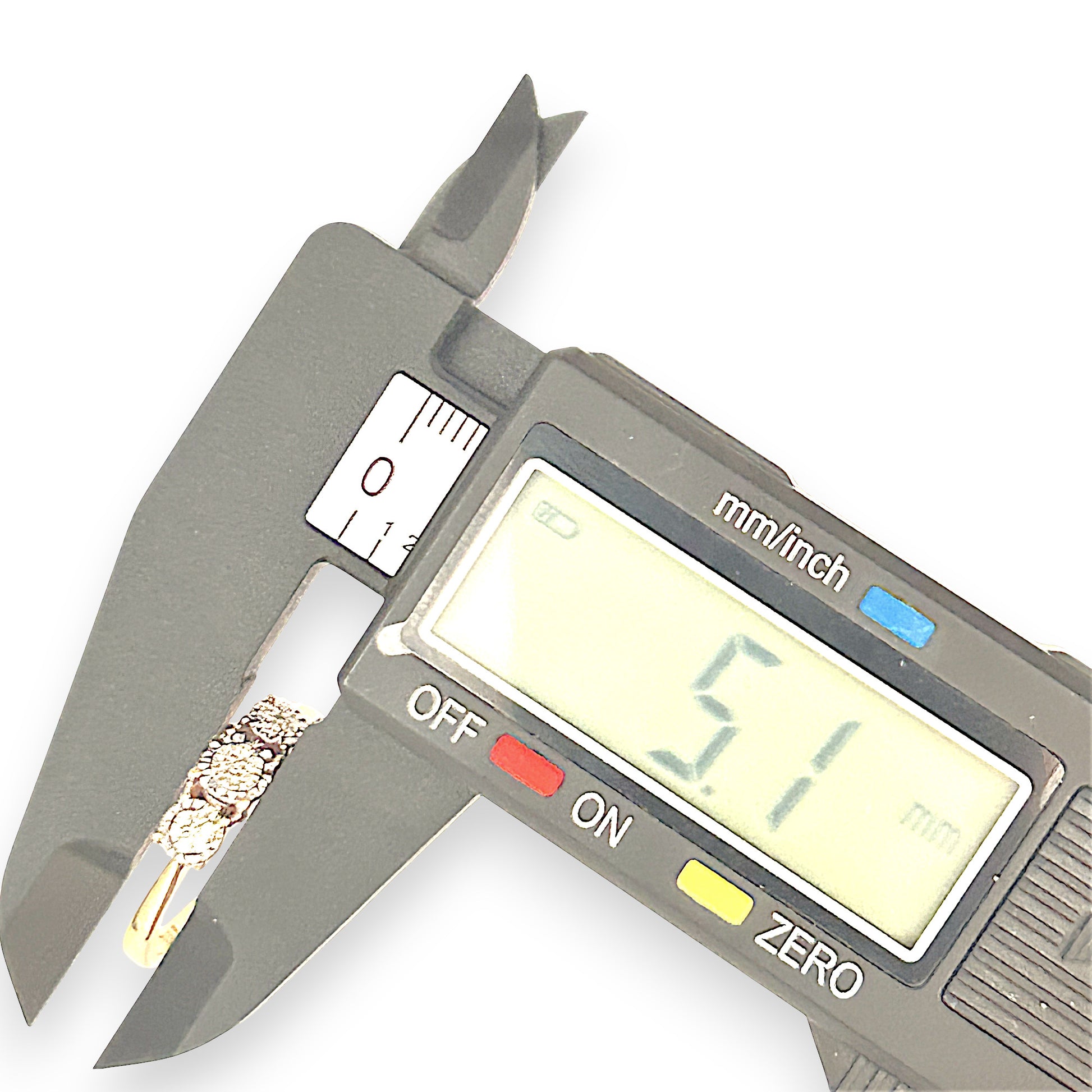 Crafted in radiant 9ct gold, this ring showcases three round diamond clusters with a total weight of 0.12ct, offering a delicate sparkle across the band. Each cluster is set in a circular arrangement, enhancing the ring’s graceful symmetry and charm. It’s a refined piece that blends classic elegance with subtle brilliance.No Pick ups