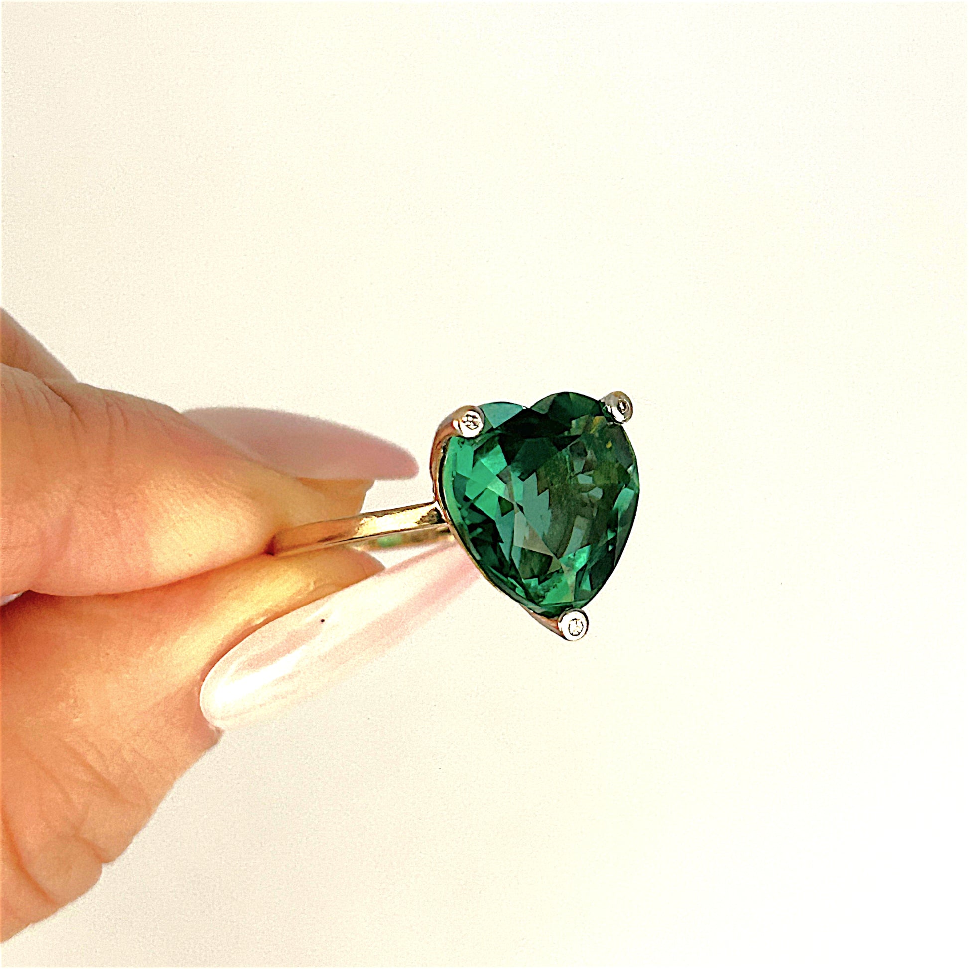 nzgolddealersGOLD DEAL | 9ct (9K) Gold Heart of Verdant Fire 7.70ct Quartz Diamond Ring Valuation $1,600