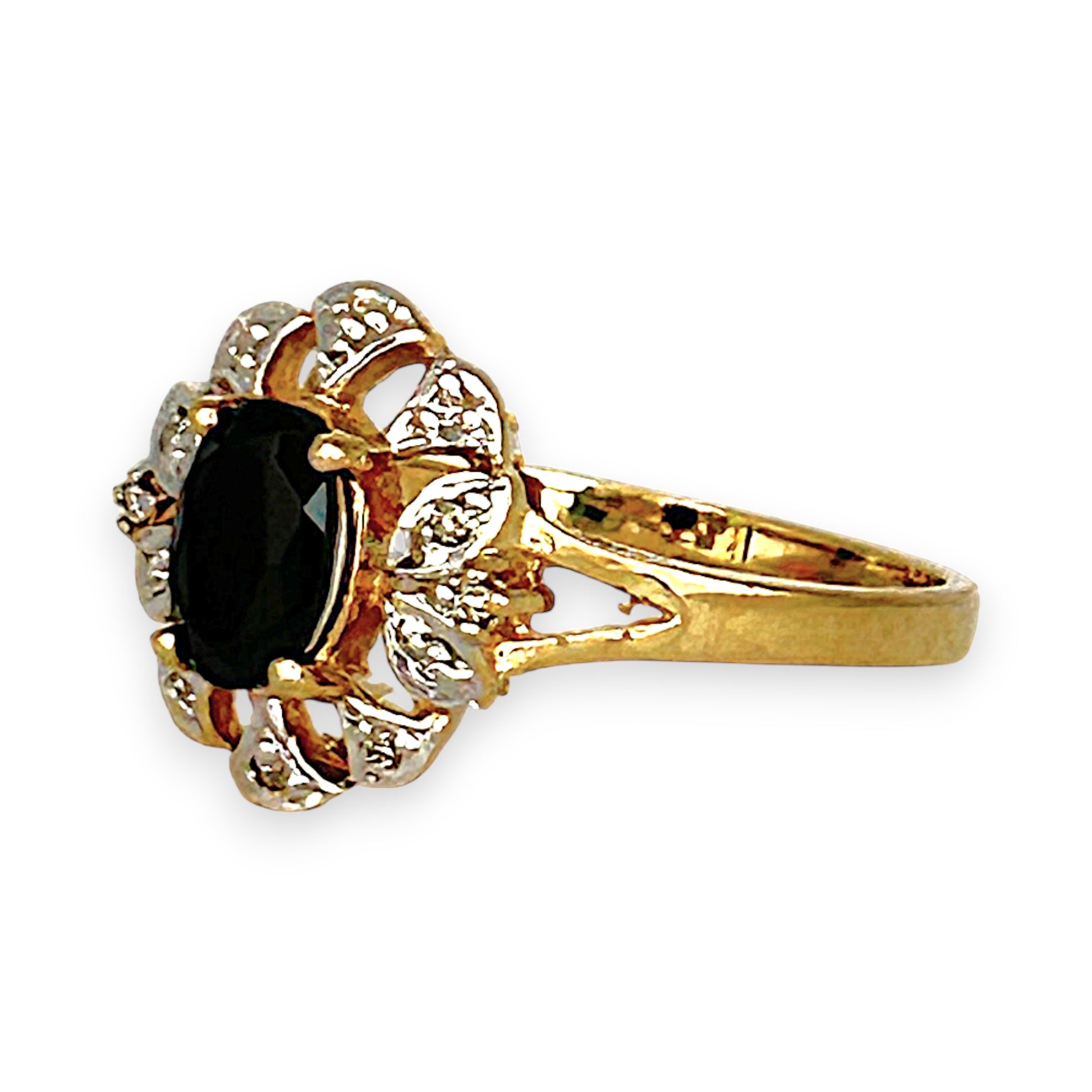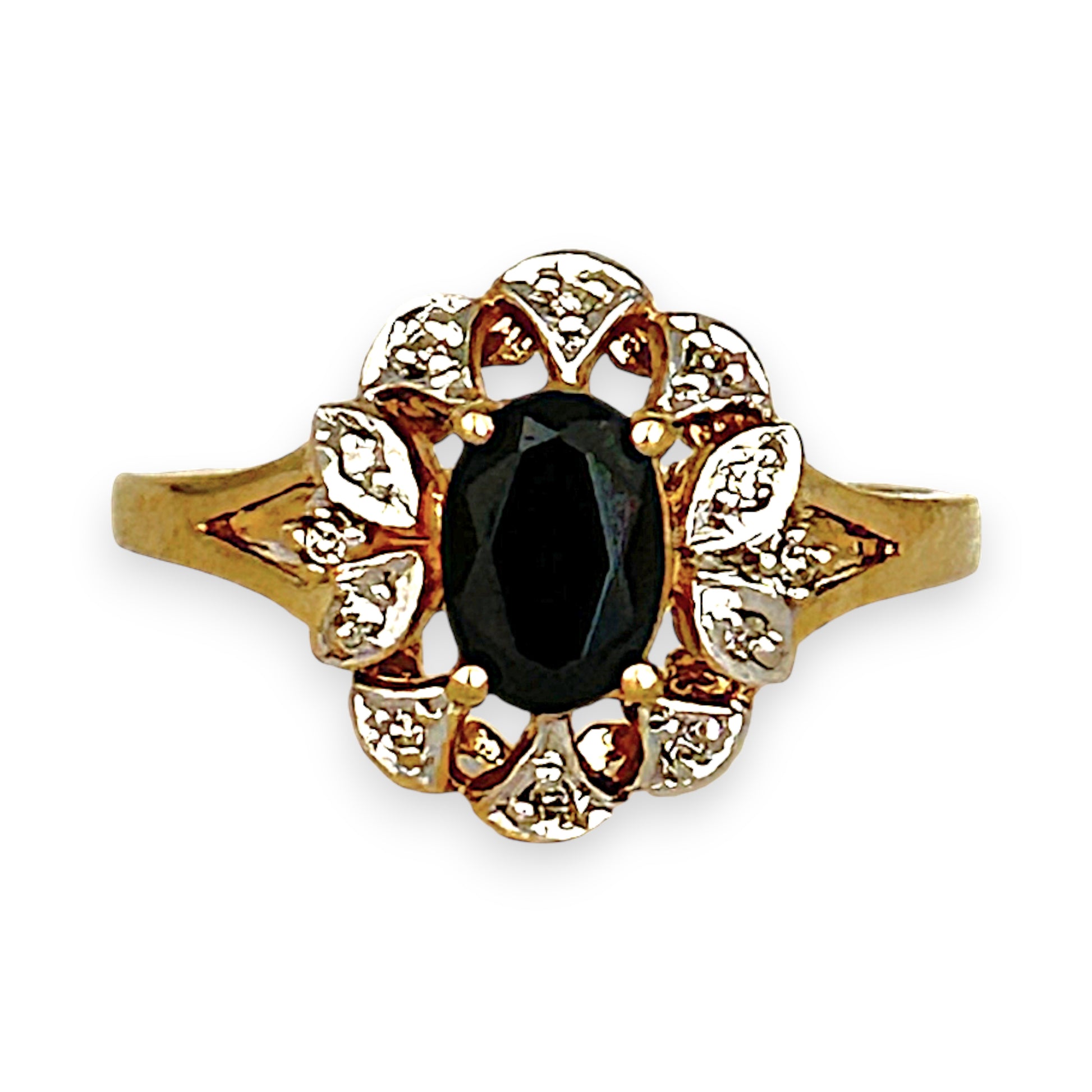 GOLD DEAL | 9ct (9K) Gold Vintage-Inspired, Black Onyx & Diamond Refurbished Ring