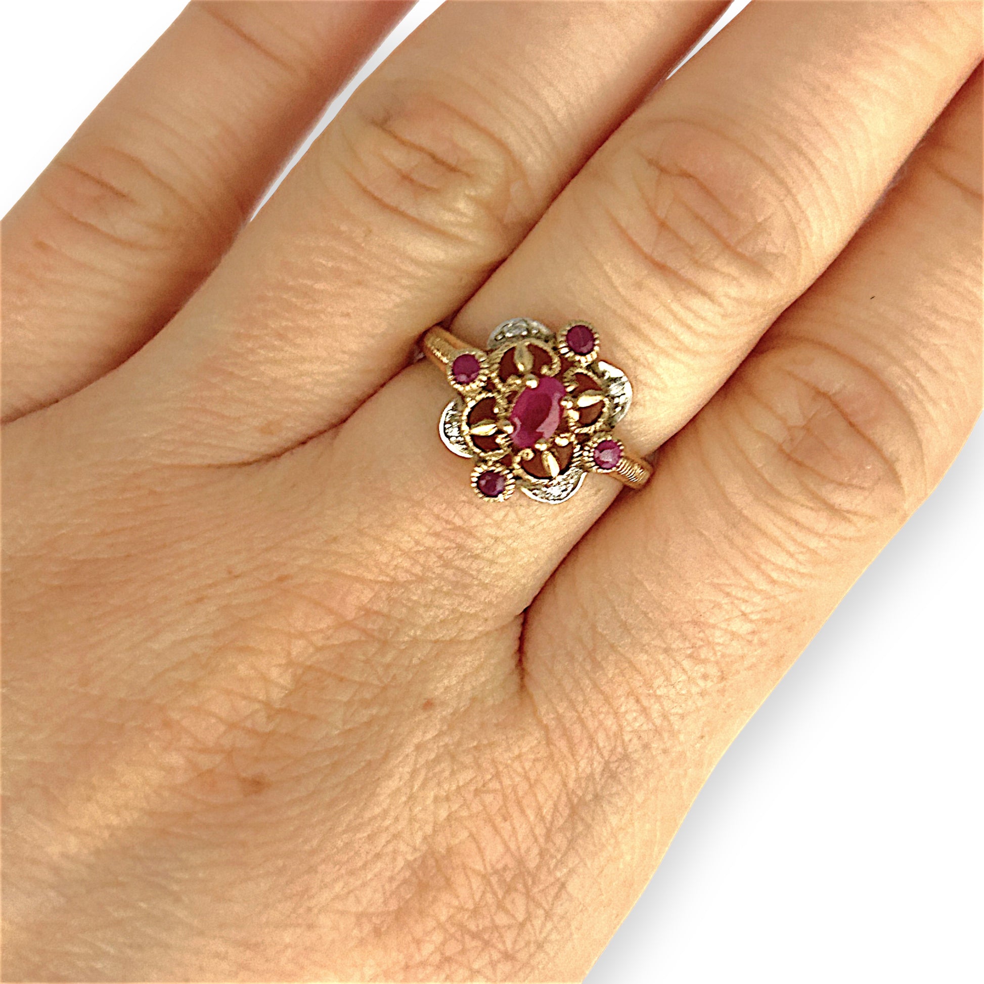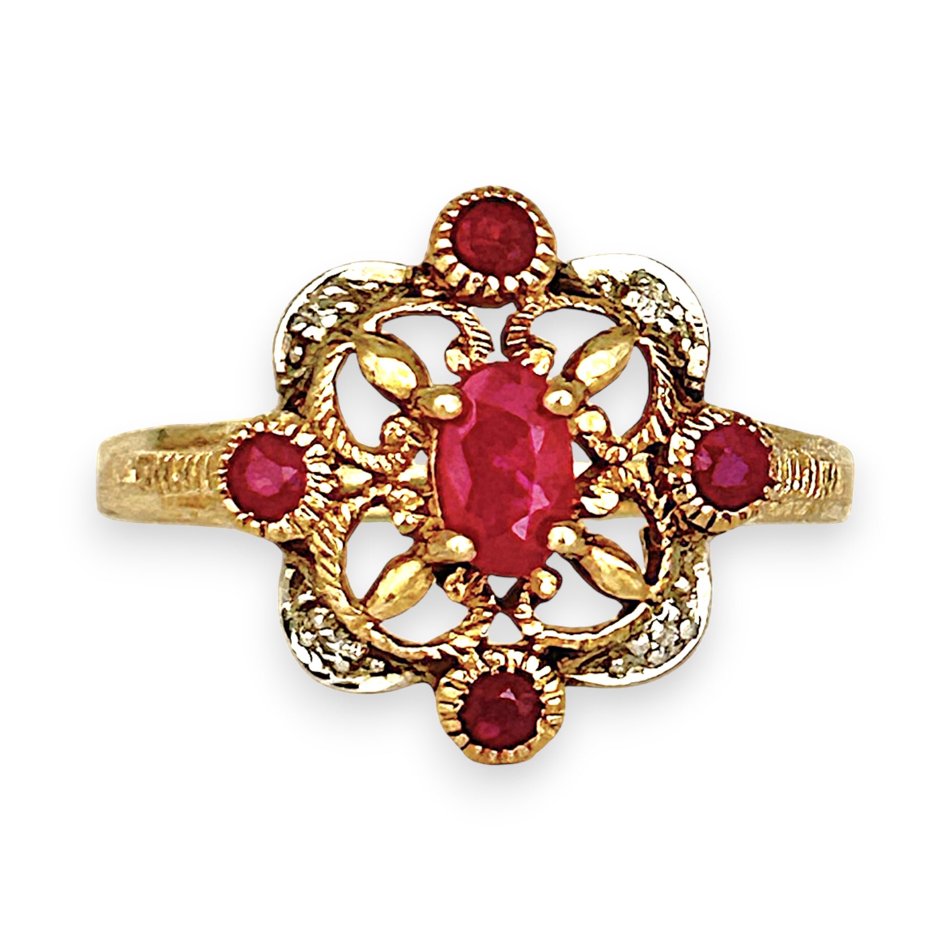 GOLD DEAL | 9ct Gold Ruby & Diamond-Kissed Filigre Ring