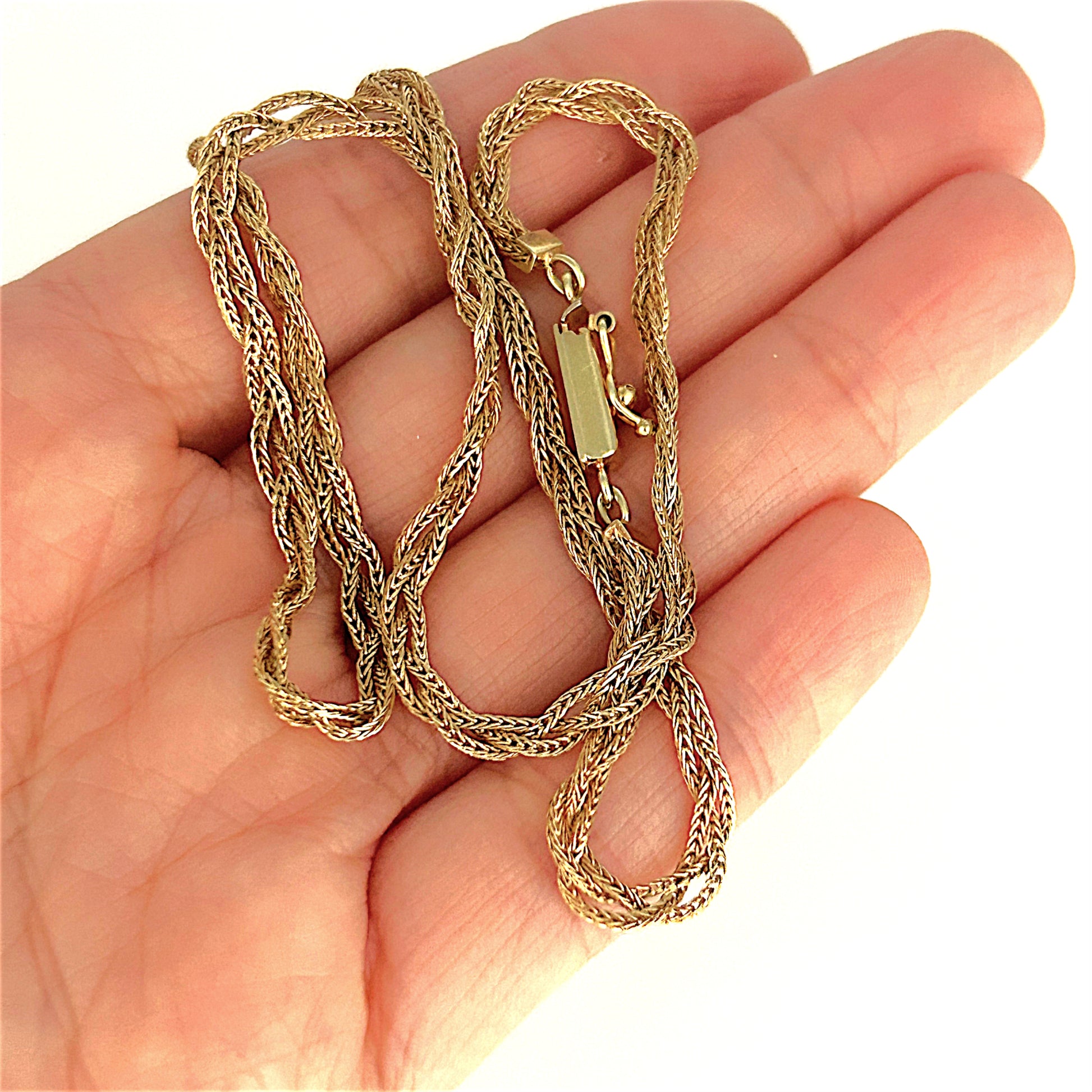 GOLD DEAL | 14ct (14K) Gold Vintage Intricate triple-strand brilliance Chopin Chain 42cm