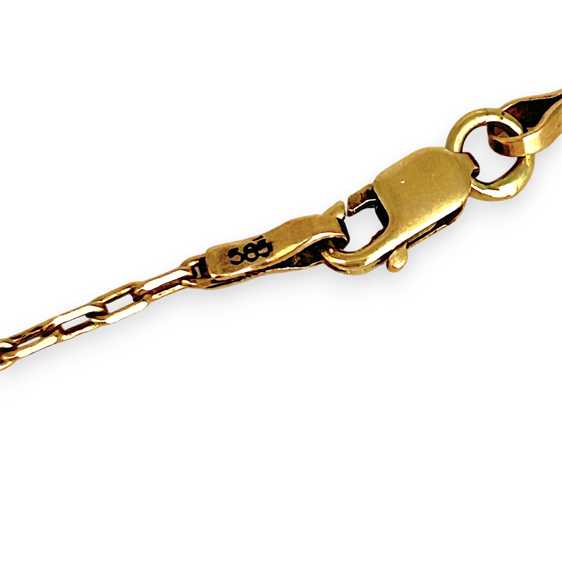 Crafted in radiant 14-carat gold, this elegant cable chain features polished, elongated oval links that create a timeless and versatile look. Finished with a secure lobster clasp, it’s perfect for wearing on its own or pairing with your favorite pendant. A classic piece that adds a touch of sophistication to any outfit.