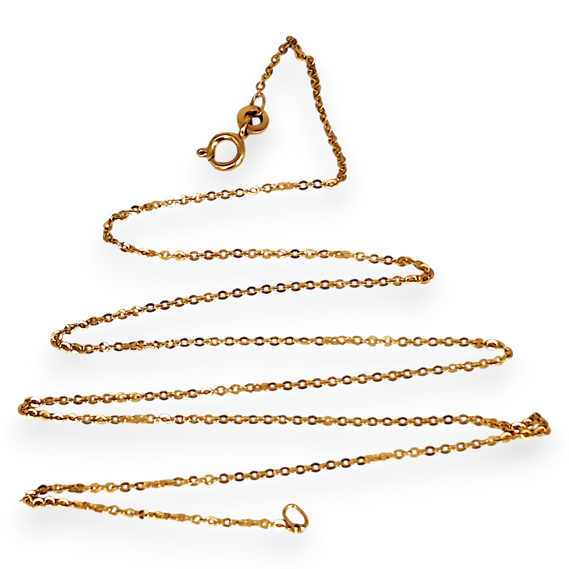 Expertly curated for timeless appeal, this 18ct gold cable chain features finely interlocked links that offer both strength and subtle sophistication. At 50cm, it drapes gracefully below the collarbone, making it ideal for solo wear or layering with pendants. The chain’s polished finish enhances its warm golden hue, while its fluid movement and balanced proportions reflect understated luxury. A versatile piece that blends classic design with contemporary refinement.