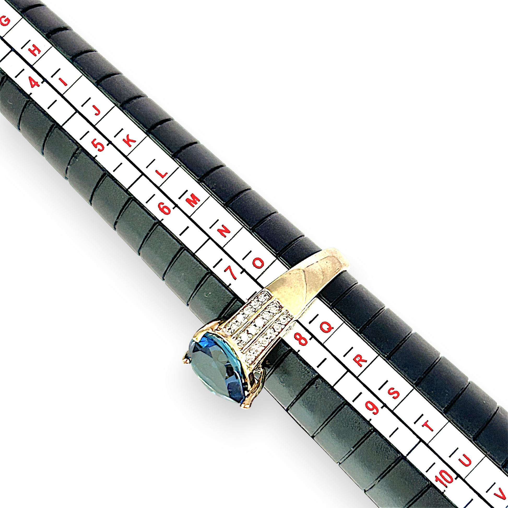Radiant and refined, this 9ct gold ring features a striking blue topaz centerpiece that commands attention. Flanked by rows of shimmering diamonds, the ring adds brilliance and balance to its vibrant silhouette. A dazzling expression of sophistication and charm—perfect for those who love to shine or gift with meaning.