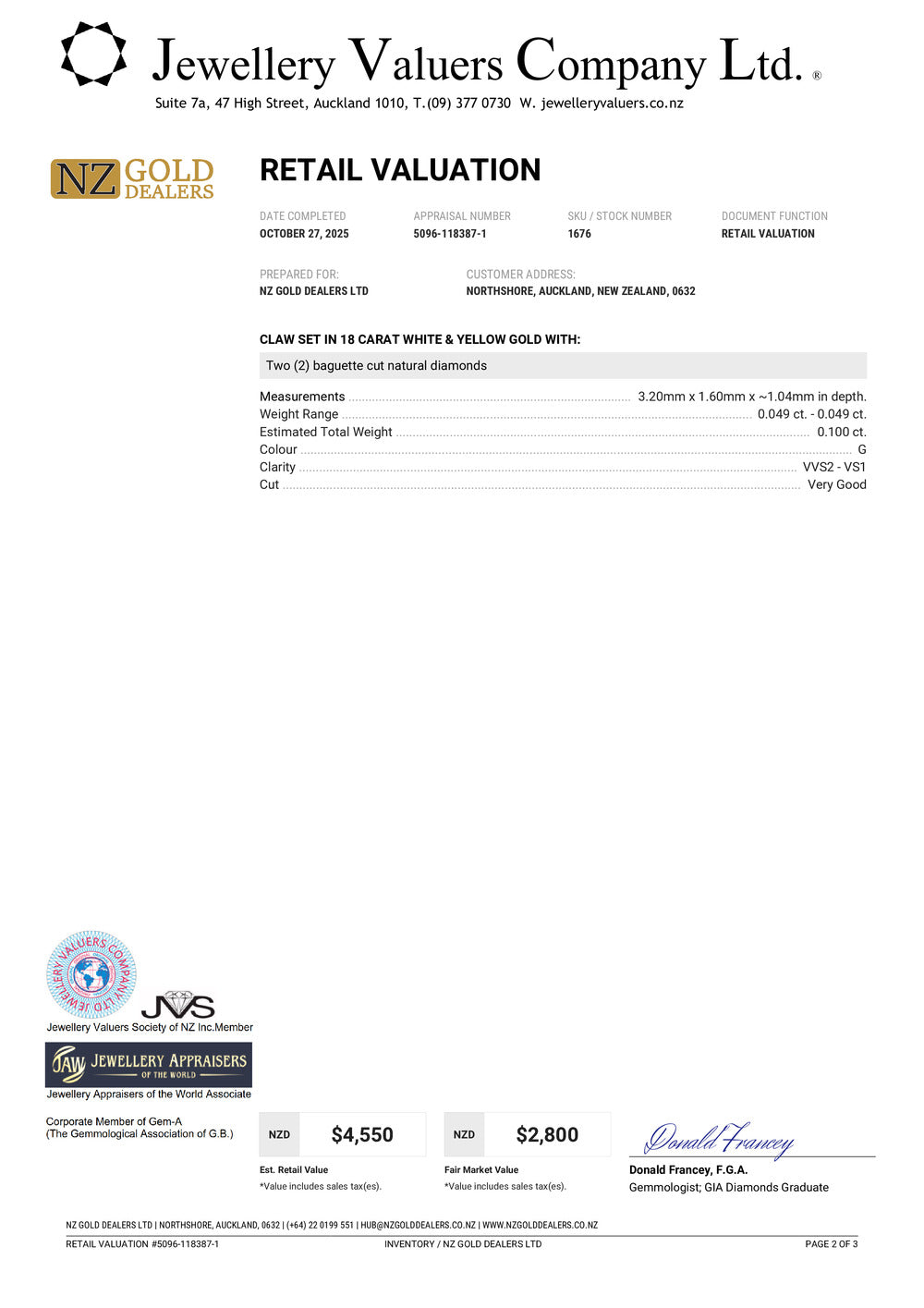 - Natural Diamonds 12 round brilliant cut & 2 baguette cut, TDW 1.22ct.