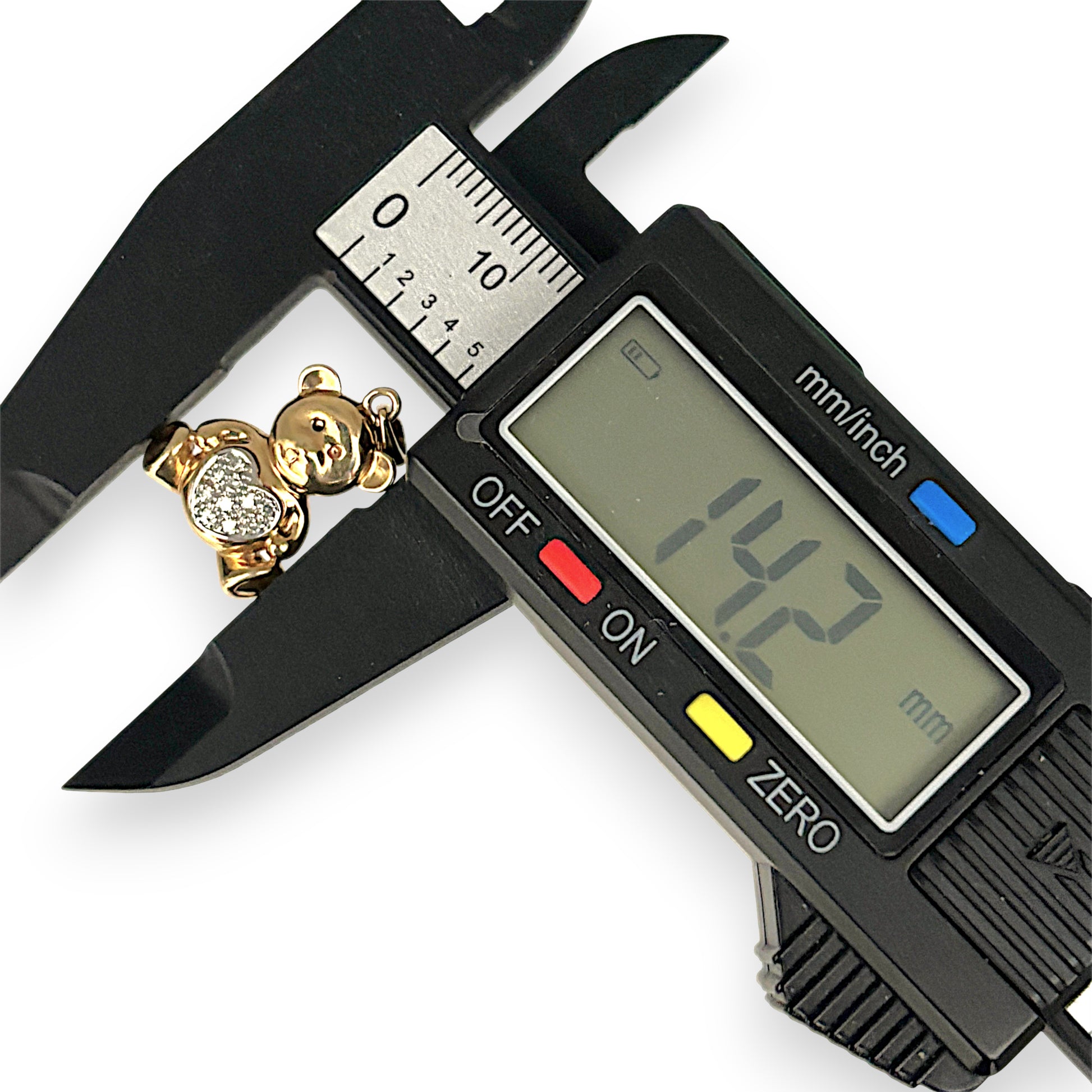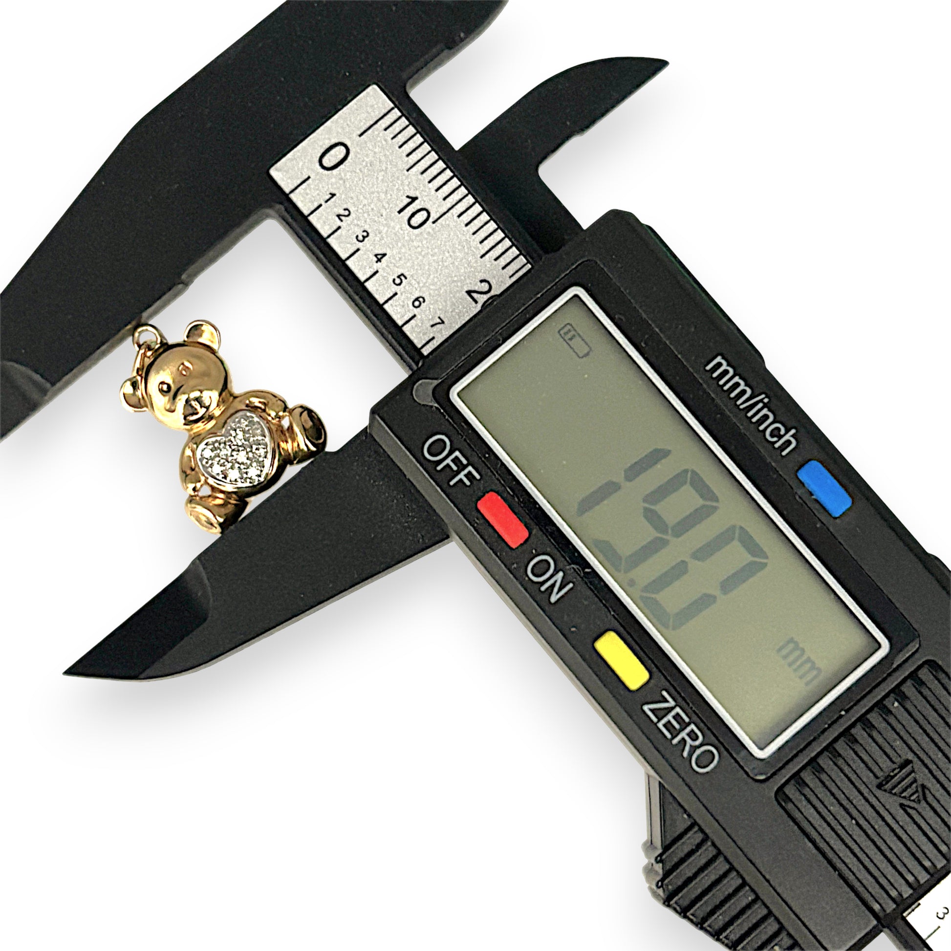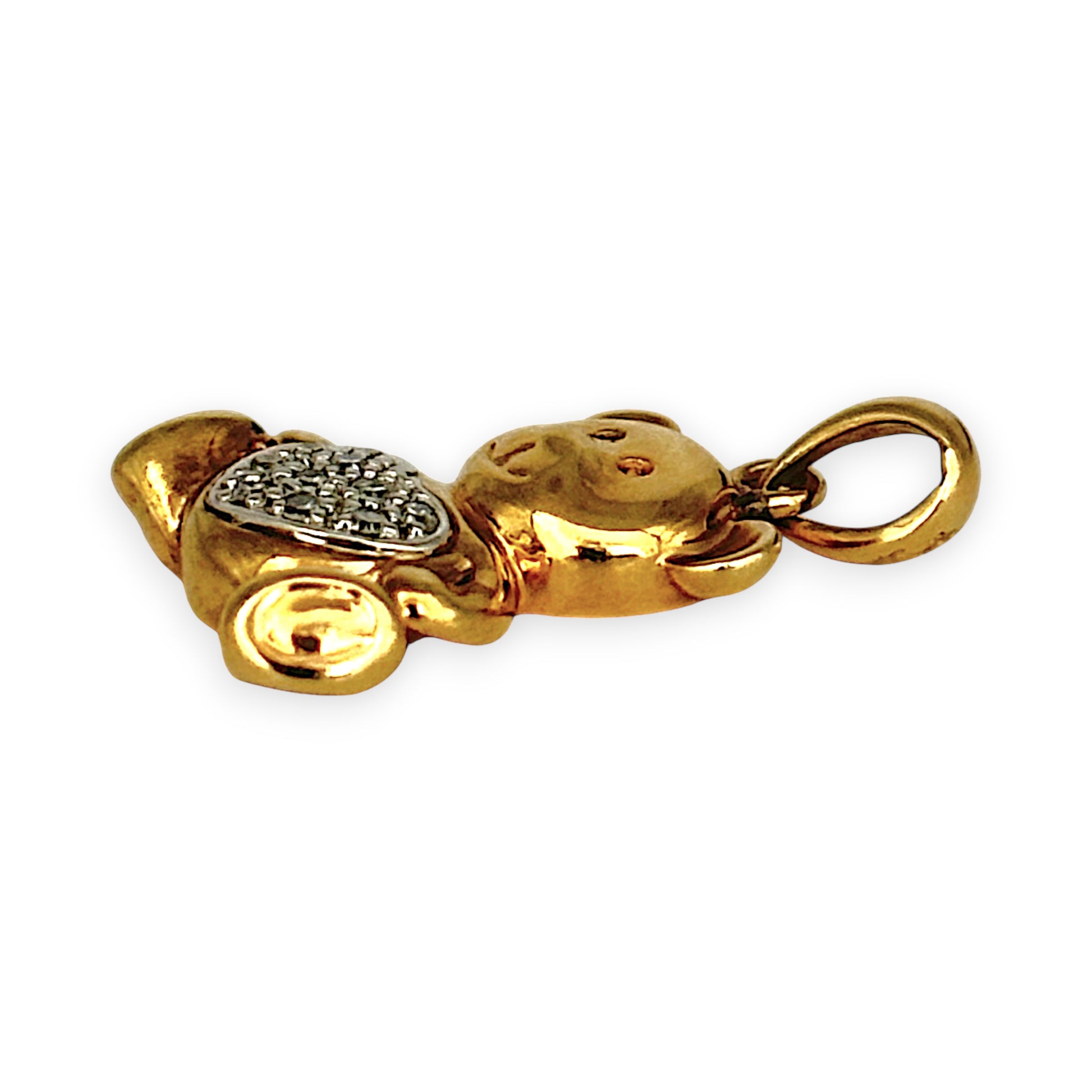 Crafted in 9kt gold, this teddy bear pendant features a heart adorned with natural diamonds.