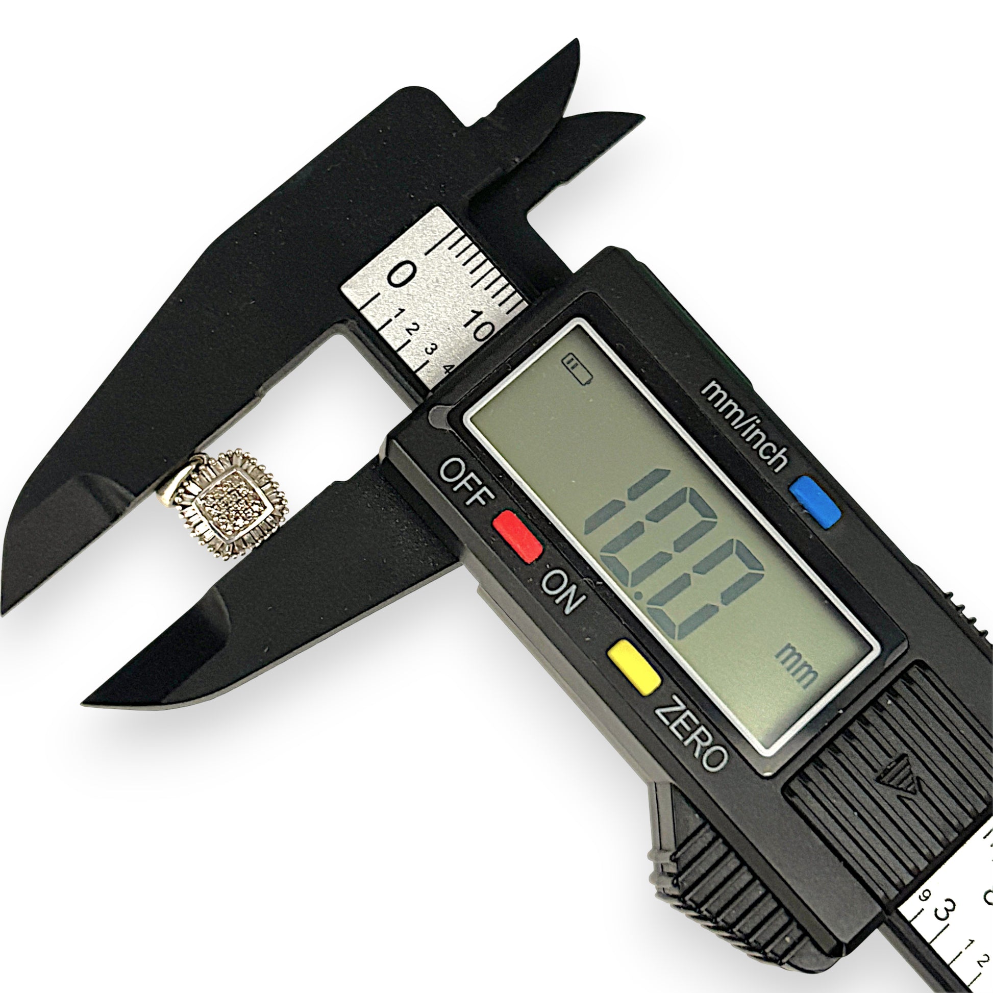 A radiant square of brilliance—pavé-set diamonds framed by baguette cuts in luminous white gold. Modern elegance meets timeless sparkle in this striking geometric design.