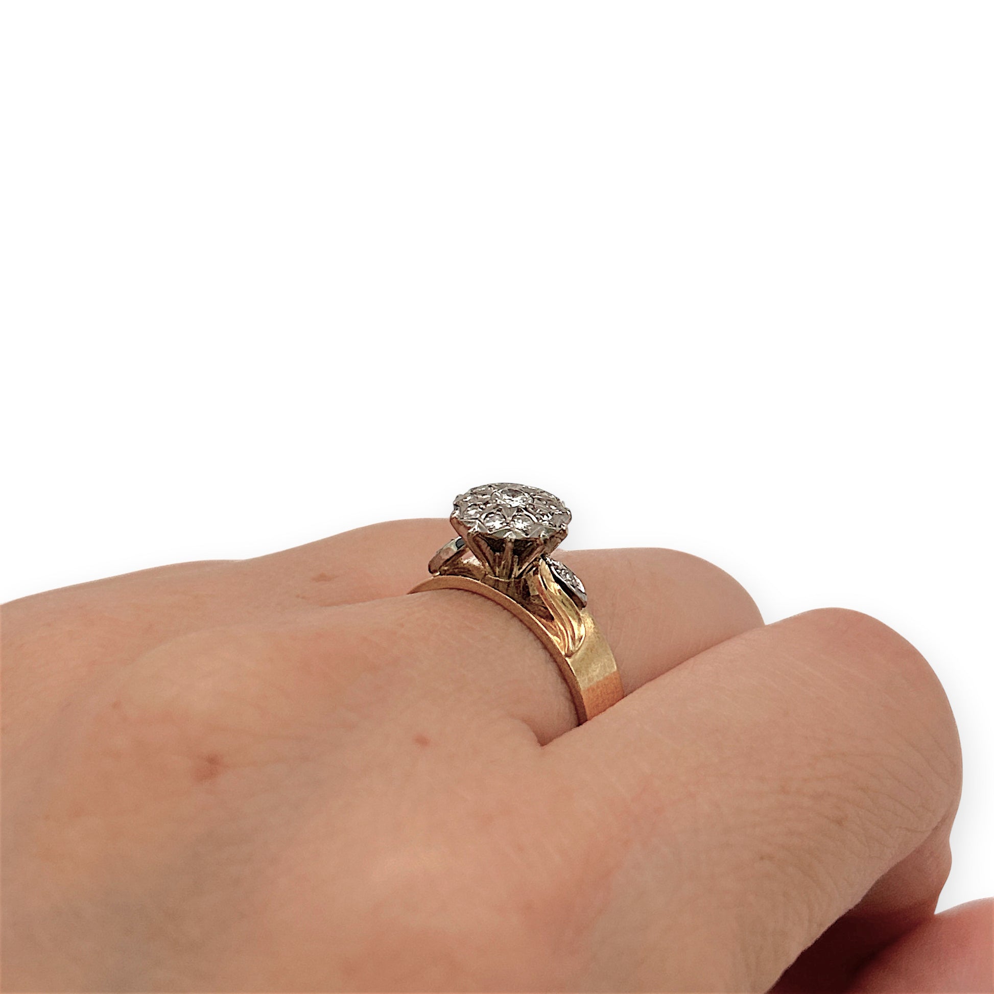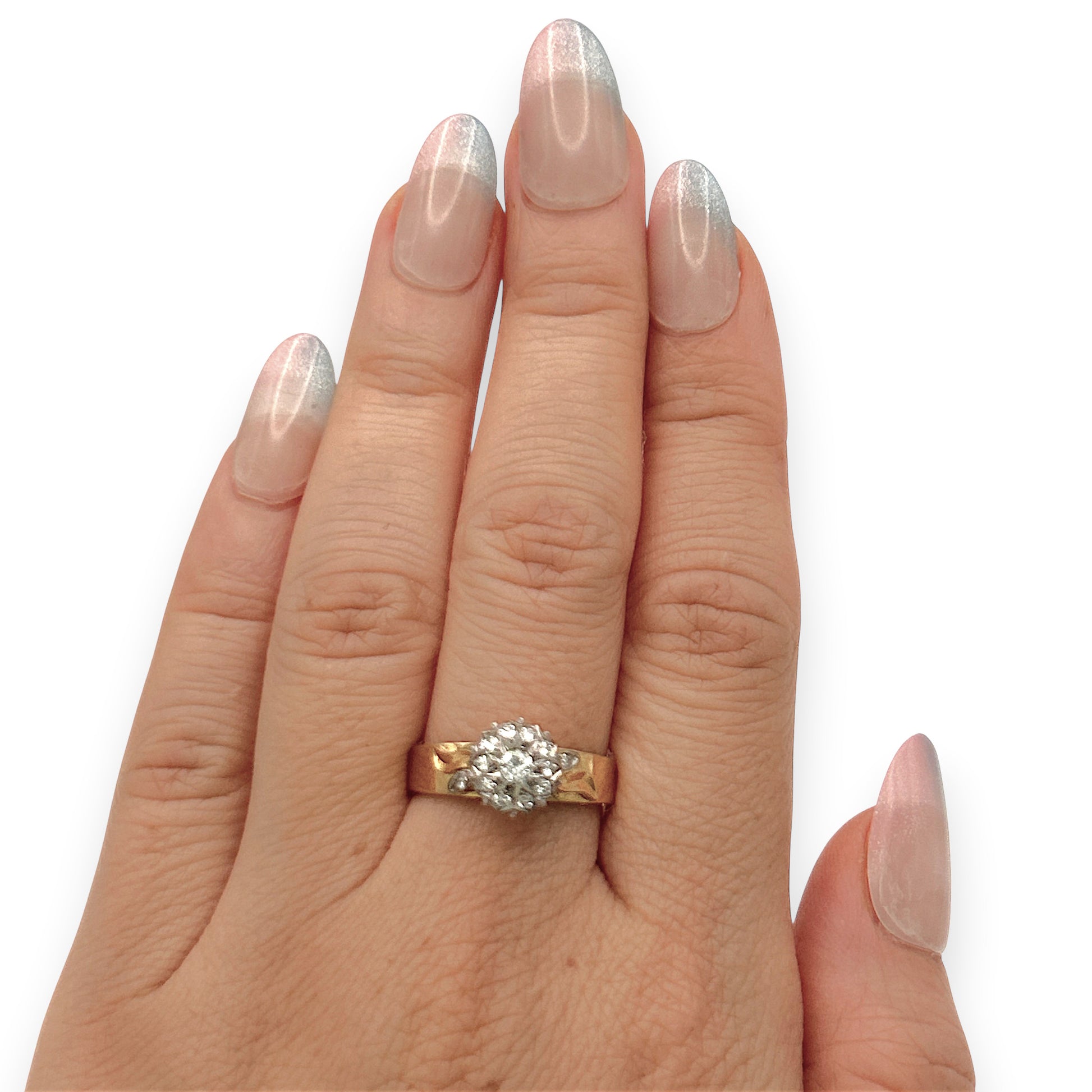 A graceful diamond cluster framed in warm 18kt gold. Touches of white gold highlight its sculpted form. Elegant, confident, and crafted with exceptional detail. A boutique treasure made to be admired.