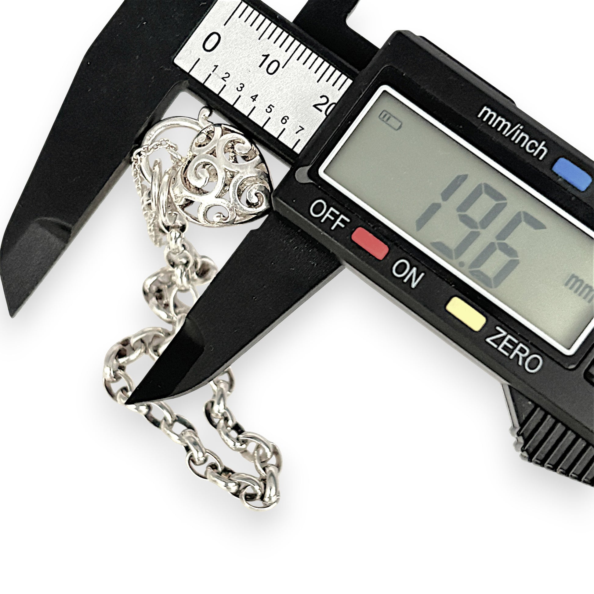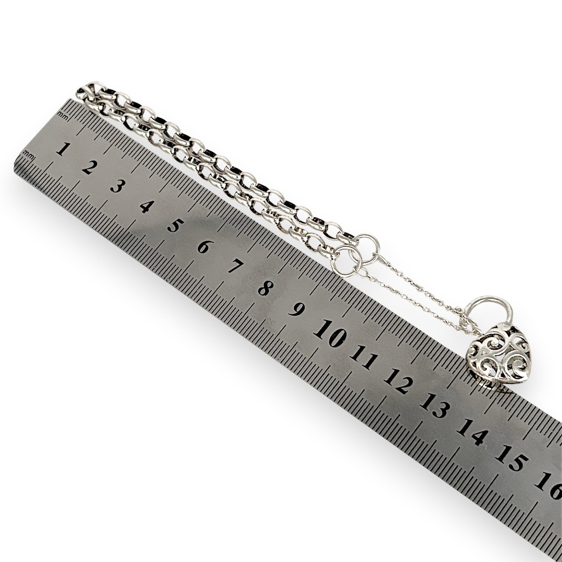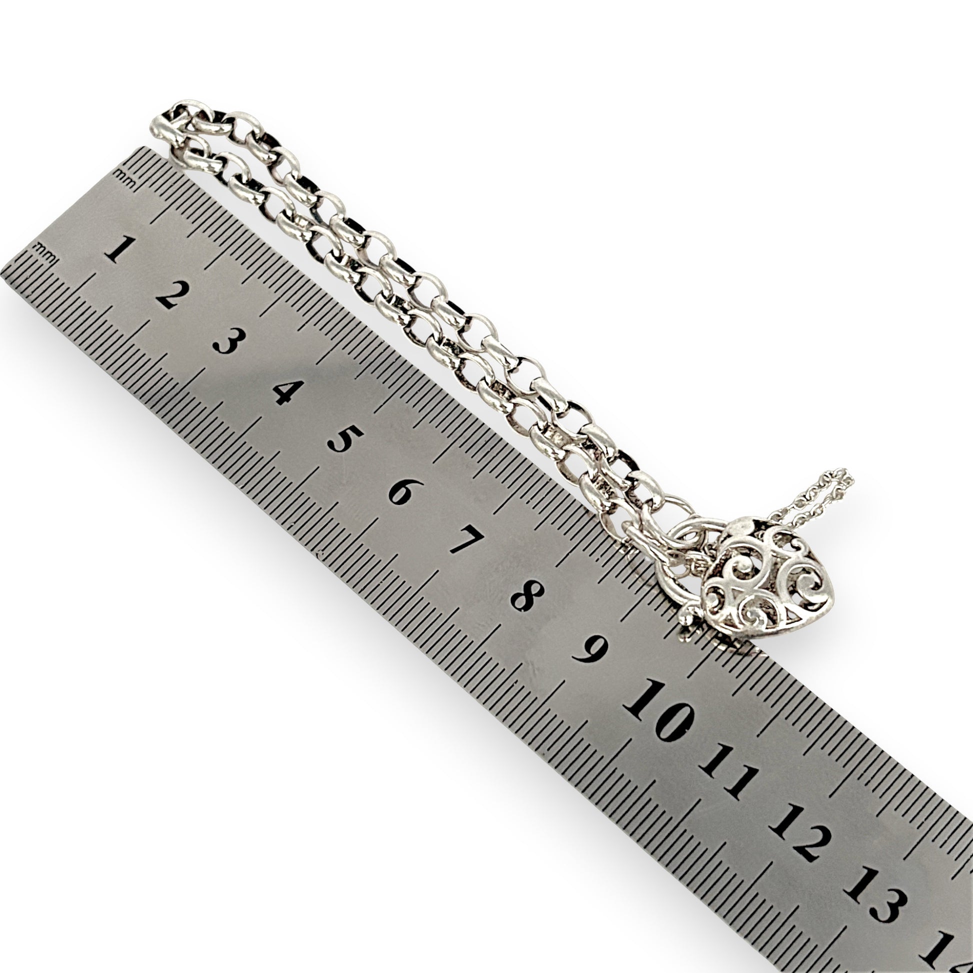 SILVER DEAL | Sterling Silver Filigree Heart Padlock Bracelet 19cm