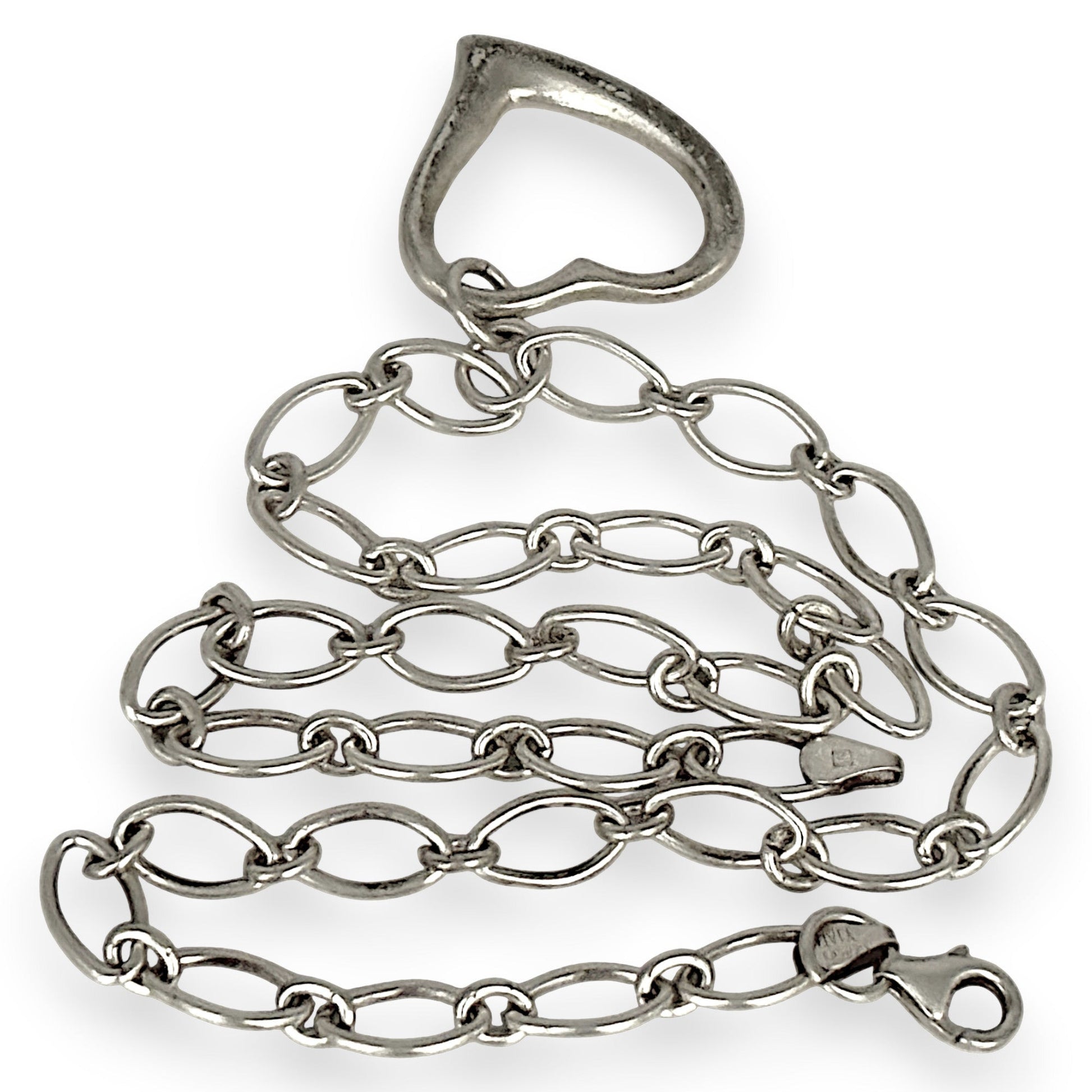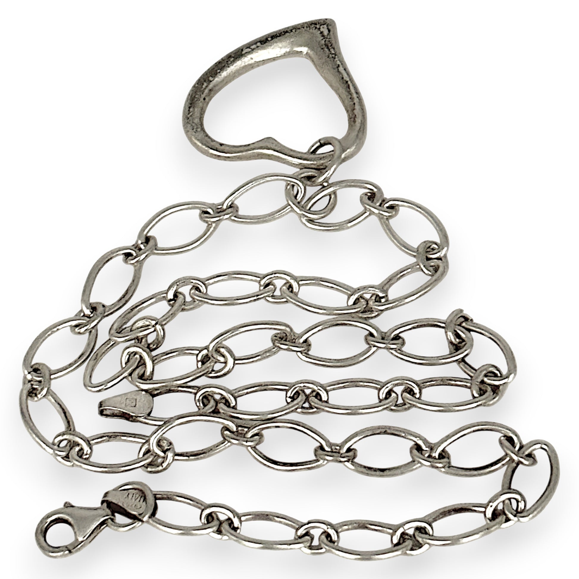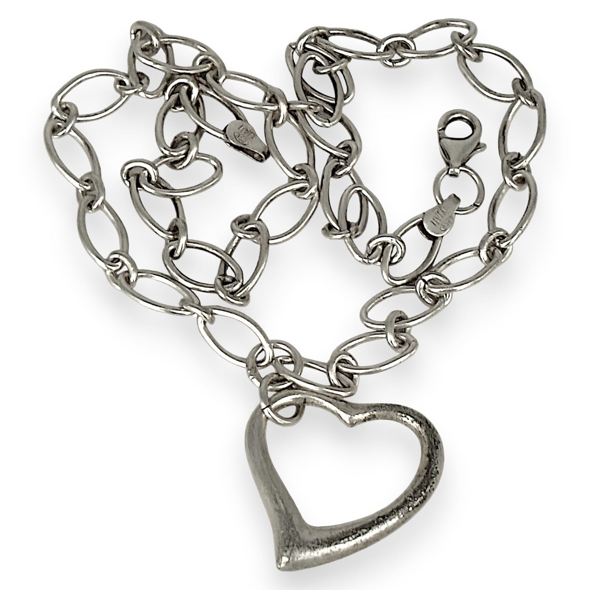 Where elegance meets emotion. This sterling silver necklace features a bold oval-link chain, gracefully arranged to echo the shape of a heart—an intentional nod to the sentiment it carries. At its center hangs a striking asymmetrical heart pendant, crafted with subtle texture and gentle curves that evoke individuality and depth. Finished with a secure lobster clasp and a discreet “S925” hallmark tag, this piece blends durability with heartfelt design. Ideal for gifting or personal wear, it’s a modern emblem of love, strength, and authenticity.