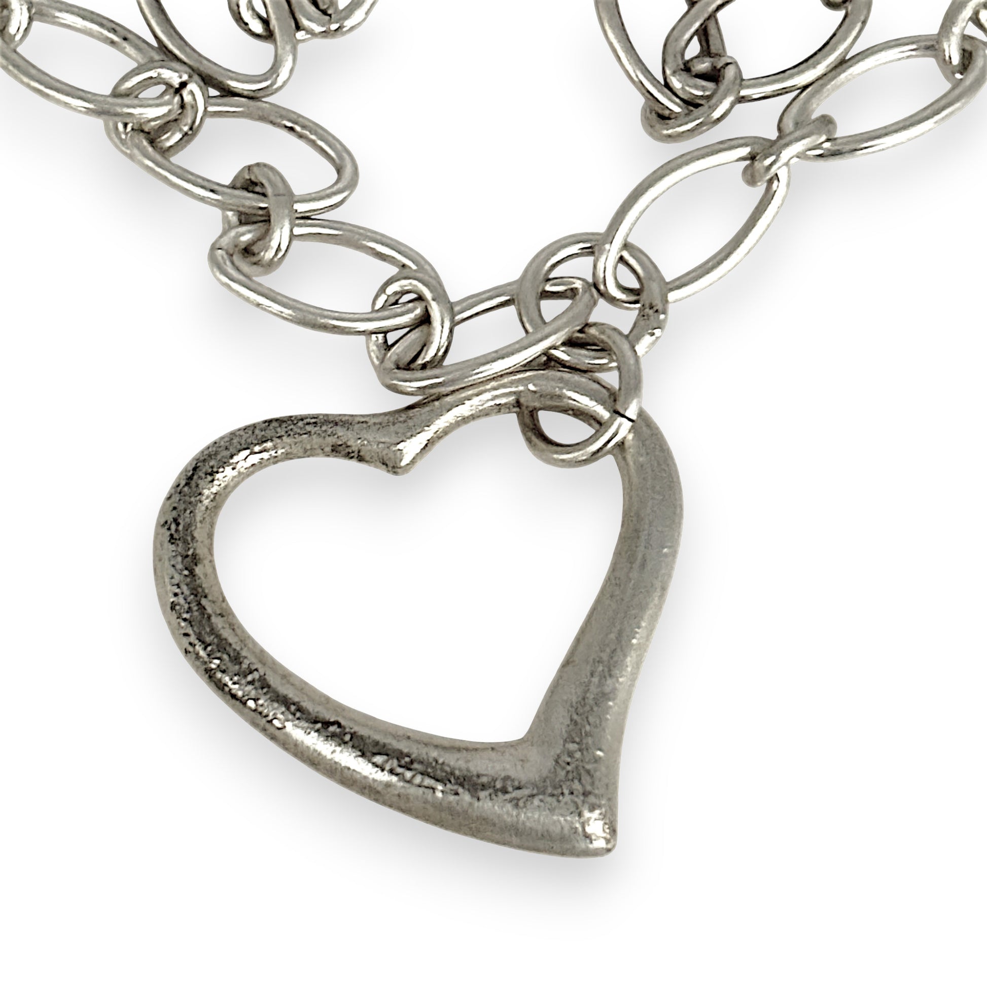 SILVER DEAL | Sterling Silver Asymmetrical Heart Pendant Necklace 42cm