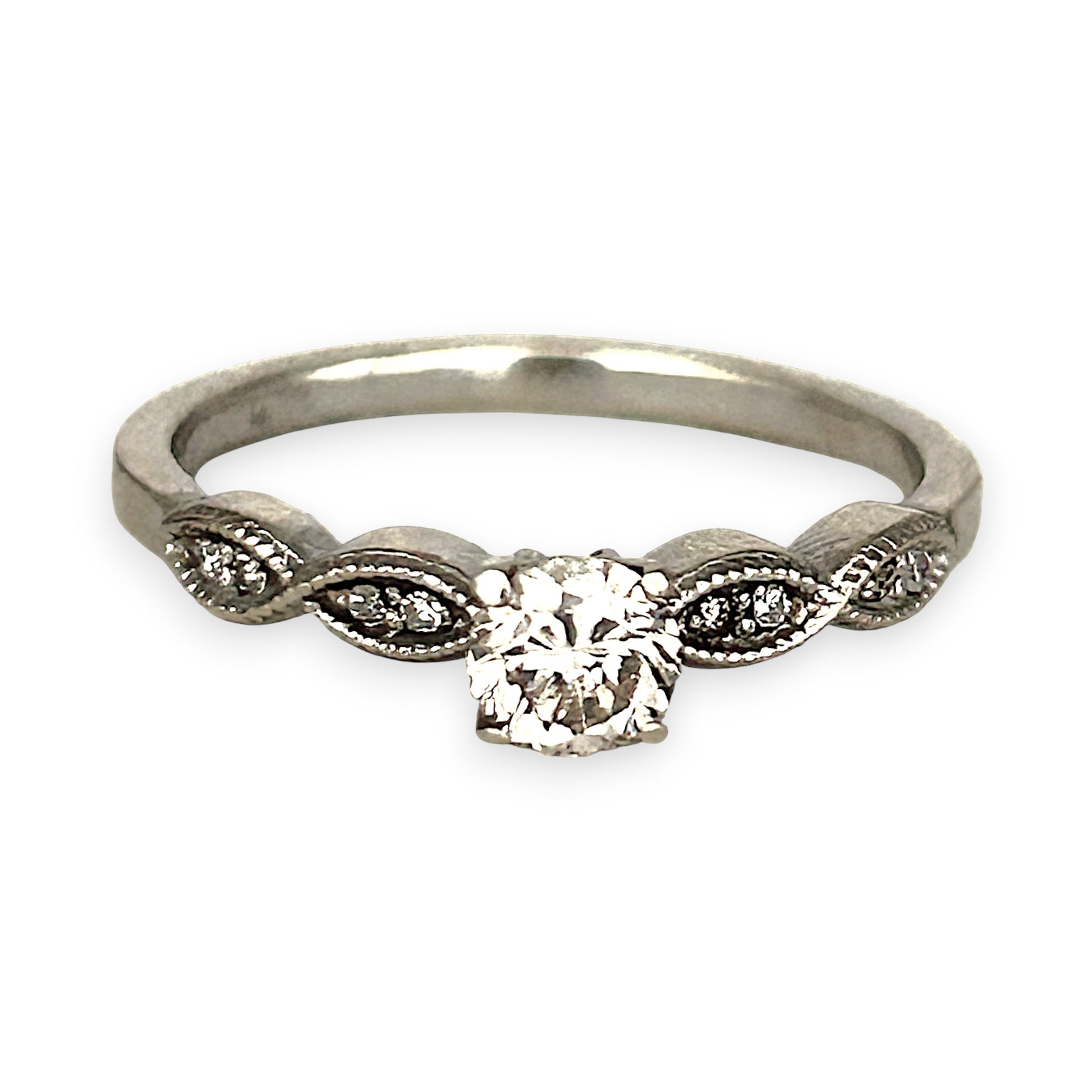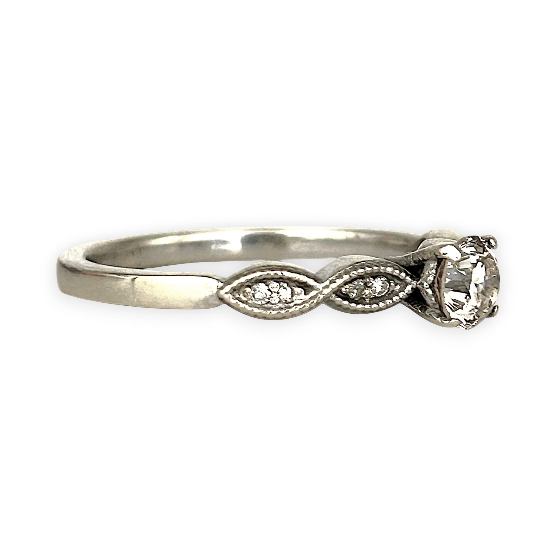 Crafted in luminous 10ct white gold, this elegant ring features a central round-cut diamond that captures light with brilliant sparkle. The ring is adorned with delicate round diamond accents, enhancing the overall radiance and sophistication of the piece. A timeless design perfect for marking special moments or adding refined elegance to everyday wear.